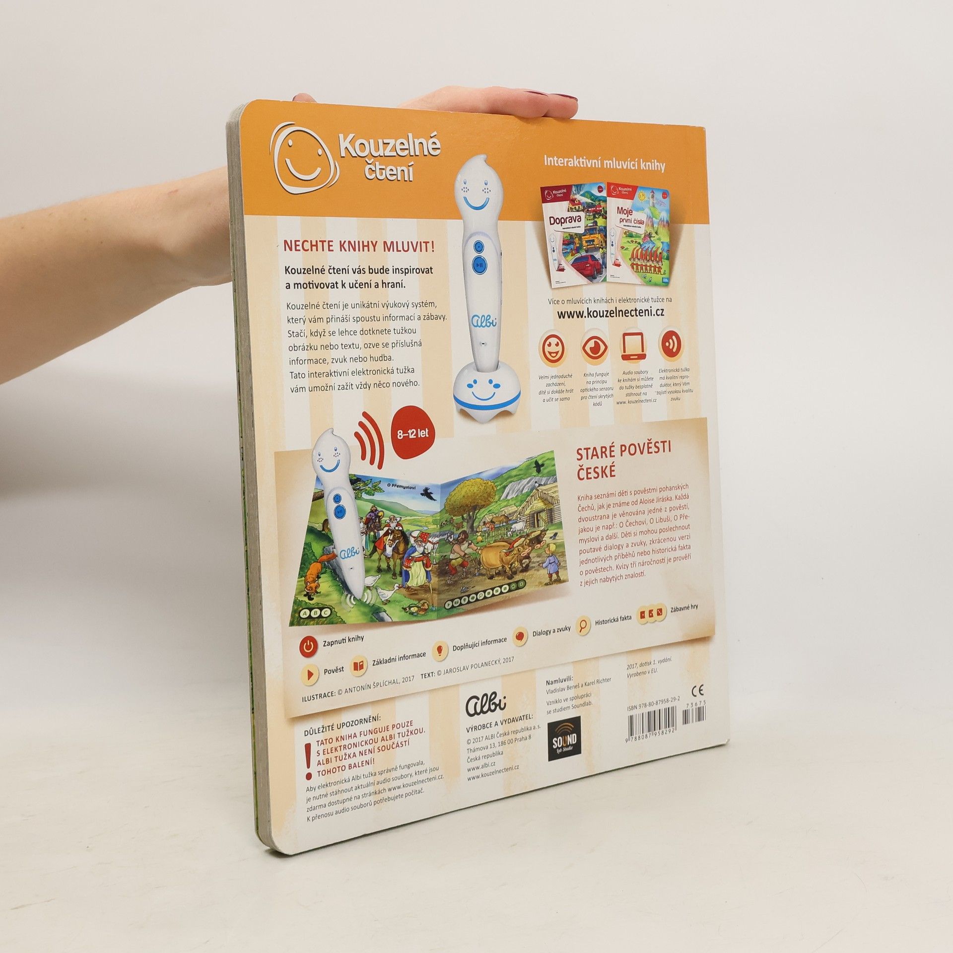 Kniha Staré pověsti české z edice Kouzelné čtení provede děti od 8 let pověstmi pohanských Čechů od Aloise Jiráska. Každá dvoustrana knihy je věnována jedné pověsti. Těšit se můžete na tyto pověsti - O Čechovi, O Krokovi a jeho dcerách, O Bivoji, O Libuši, O Přemyslovi, Libušina proroctví, O Křesomyslu a Horymírovi a Lucká válka. V naučné knize na děti čeká zkrácená verze jednotlivých pověstí, seznámení s postavami, poutavé dialogy a zvuky. V knize Staré pověsti české nechybí zajímavé kvízy. Tentokrát ve 3 obtížnostech - od jednoduchého na poznávání předmětů, po složitější, kdy děti dostávají na výběr ze 3 odpovědí a určují, která odpověď je správná. Krásné ilustrace Antonína Šplíchala rozvinou fantazii, jak vše mohlo vypadat a výstižné dialogy nakreslených postav předají dětem nenásilnou formou podstatu jednotlivých pověstí. Kniha Staré pověsti české obsahuje přes 2000 zvuků a textů. Namluvili ji Vladislav Beneš a Karel Richter.