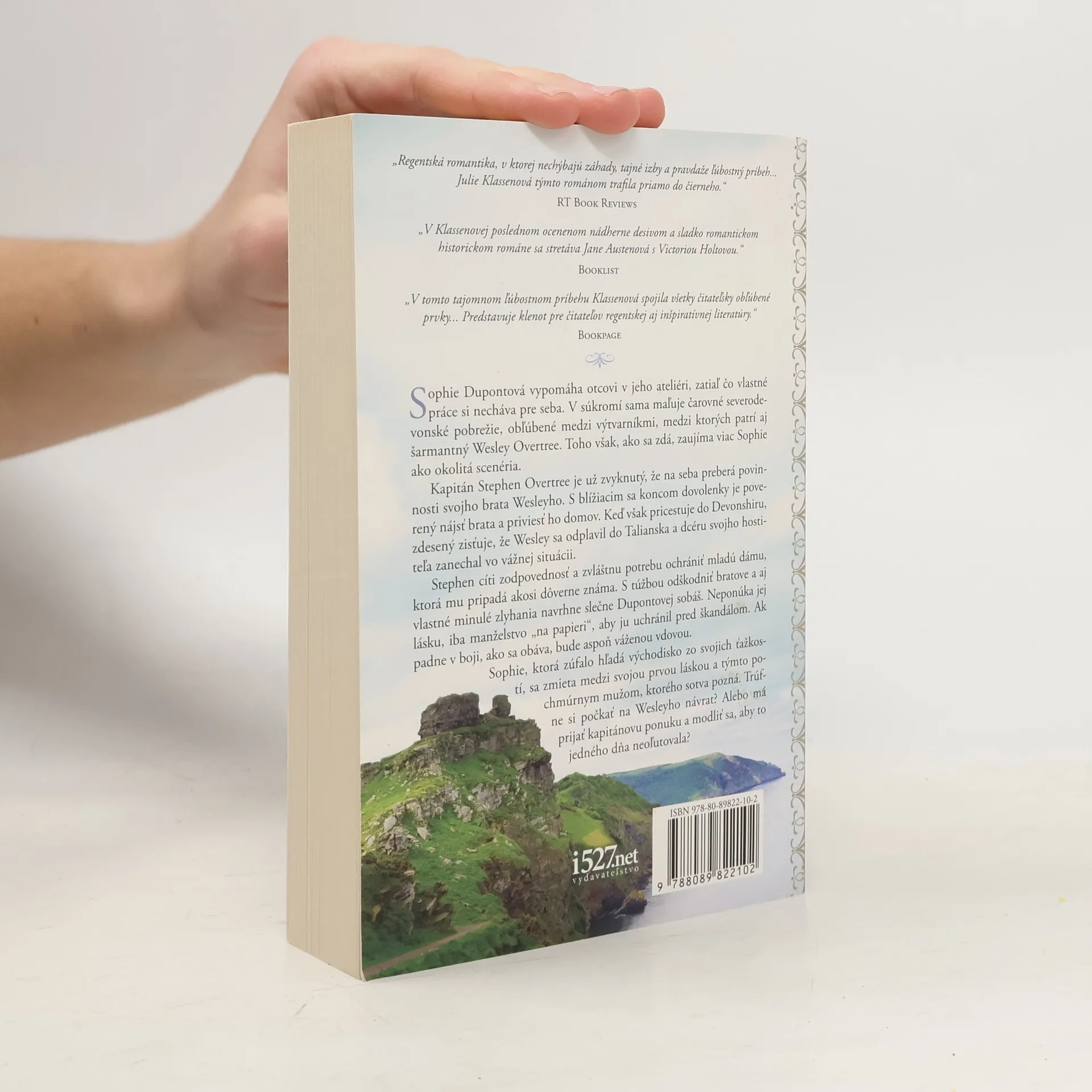 Sophie Dupontová vypomáha otcovi v jeho ateliéri, zatiaľ čo vlastné práce si necháva pre seba. V súkromí sama maľuje čarovné severo-devonské pobrežie, obľúbené medzi výtvarníkmi, medzi ktorých patrí aj šarmantný Wesley Overtree. Toho však, ako sa zdá, zaujíma viac Sophie ako okolitá scenéria. Kapitán Stephen Overtree je už zvyknutý, že na seba preberá povinnosti svojho brata Wesleyho. S blížiacim sa koncom dovolenky je poverený nájsť brata a priviesť ho domov. Keď však pricestuje do Devonshiru, zdesený zisťuje, že Wesley sa odplavil do Talianska a dcéru svojho hostiteľa zanechal vo vážnej situácii. Stephen cíti zodpovednosť a zvláštnu potrebu ochrániť mladú dámu, ktorá mu pripadá akosi dôverne známa. S túžbou odškodniť vlastné minulé zlyhania rovnako ako aj bratove urobí slečne Dupontovej ponuku na sobáš. Neponúka jej lásku, iba manželstvo "na papieri", aby ju uchránil pred škandálom. Ak padne v boji, ako sa obáva, bude aspoň váženou vdovou. Sophie, ktorá zúfalo hľadá východisko zo svojich ťažkostí, sa zmieta medzi svojou prvou láskou a týmto pochmúrnym mužom, ktorého sotva pozná. Trúfne si počkať na Wesleyho návrat? Alebo má prijať kapitánovu ponuku a modliť sa, aby to jedného dňa neoľutovala?