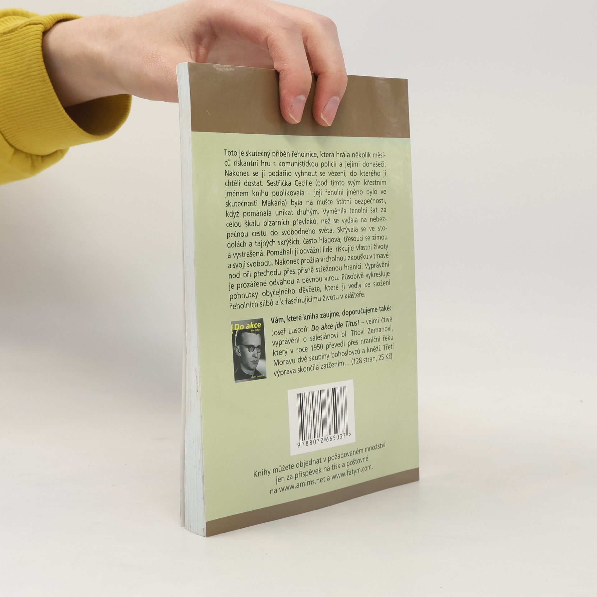 Toto je skutečný příběh řeholnice, která hrála několik měsíců riskantní hru s komunistickou policií a jejími donašeči. Nakonec se jí podařilo vyhnout se vězení, do kterého ji chtěli dostat. Sestřička Cecílie (pod tímto svým křestním jménem knihu publikovala – její řeholní jméno bylo ve skutečnosti Makária) byla na mušce Státní bezpečnosti, když pomáhala unikat druhým. Vyměnila řeholní šat za celou škálu bizardních převleků, než se vydala na nebezpečnou cestu do svobodného světa. Skrývala se ve stodolách a tajných skrýších, často hladová, třesoucí se zimou a vystrašená. Pomáhali jí odvážní lidé, riskující vlastní životy a svoji svobodu. Nakonec prožila vrcholnou zkoušku v tmavé noci při přechodu přes přísně střeženou hranici. Vyprávění je prozářené odvahou a pevnou vírou. Působivě vykresluje pohnutky obyčejného děvčete, které ji vedly ke složení řeholních slibů a k fascinujícímu životu v klášteře.