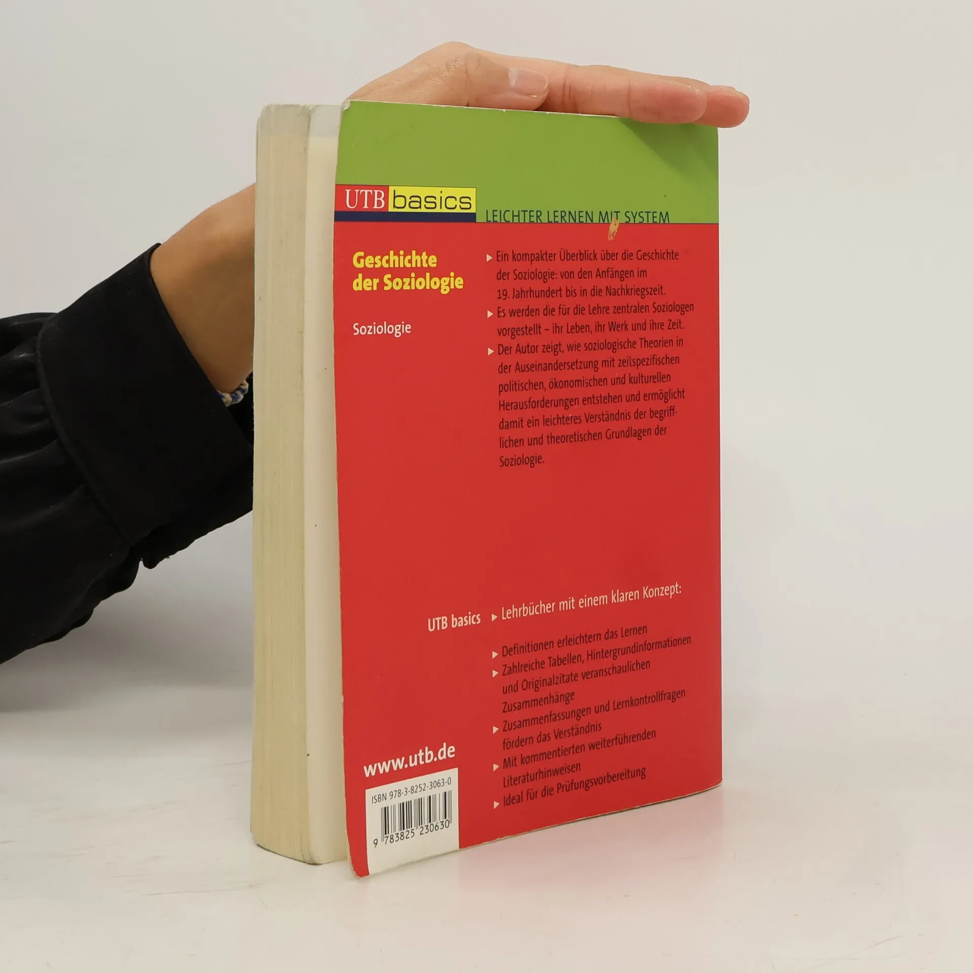 Ein kompakter Überblick über die Geschichte der Soziologie: von den Anfängen im 19. Jahrhundert bis in die Nachkriegszeit. Es werden die für die Lehre zentralen Soziologen vorgestellt – ihr Leben, ihr Werk und ihre Zeit. Der Autor zeigt, wie soziologische Theorien in der Auseinandersetzung mit zeitspezifischen politischen, ökonomischen und kulturellen Herausforderungen entstehen und ermöglicht damit ein leichteres Verständnis der begrifflichen und theoretischen Grundlagen der Soziologie. Definitionen erleichtern das Lernen. Zahlreiche Tabellen, Hintergrundinformationen und Originalzitate veranschaulichen Zusammenhänge. Zusammenfassungen und Lernkontrollfragen fördern das Verständnis. Mit kommentierten weiterführenden Literaturhinweisen. Ideal für die Prüfungsvorbereitung.