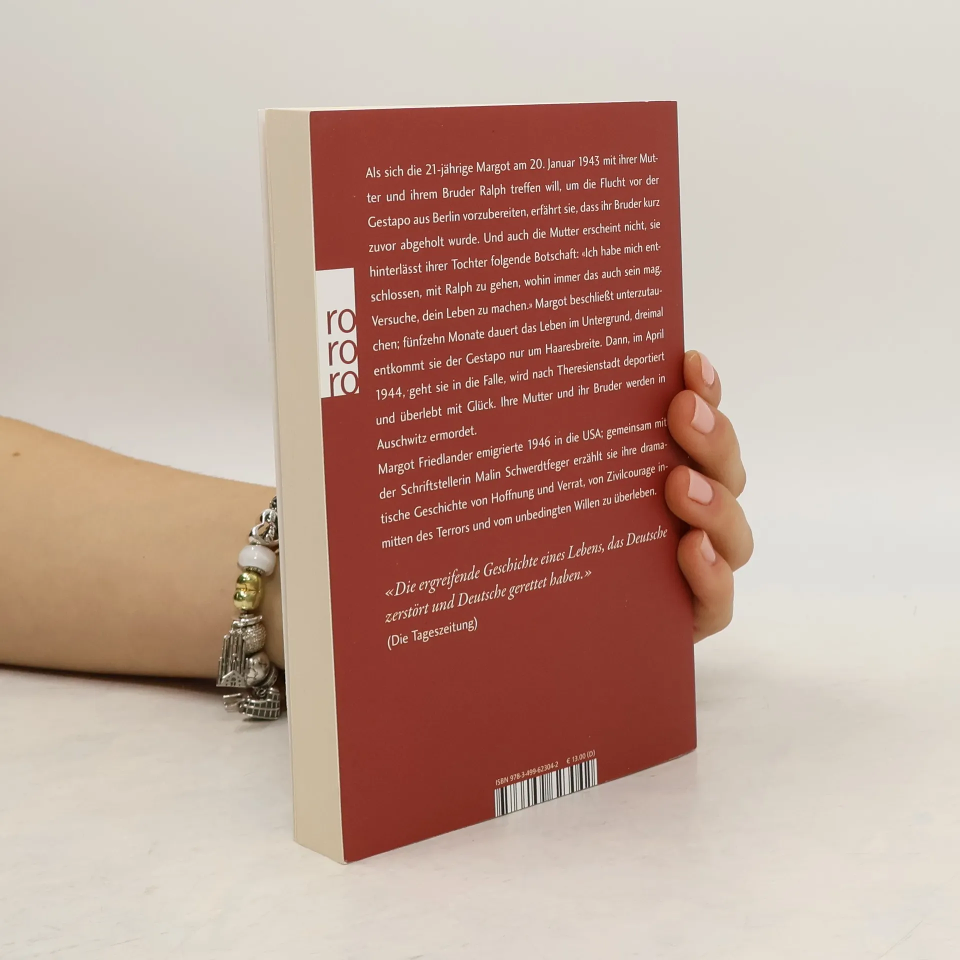Als sich die 21-jährige Margot am 20. Januar 1943 mit ihrer Mutter und ihrem Bruder Ralph treffen will, um die Flucht vor der Gestapo aus Berlin vorzubereiten, erfährt sie, dass ihr Bruder kurz zuvor abgeholt wurde. Und auch die Mutter erscheint nicht; sie hinterlässt ihrer Tochter folgende Botschaft: «Ich habe mich entschlossen, mit Ralph zu gehen, wohin immer das auch sein mag. Versuche, dein Leben zu machen.» Margot beschließt unterzutauchen; fünfzehn Monate dauert das Leben im Untergrund, dreimal entkommt sie der Gestapo nur um Haaresbreite. Dann, im April 1944, geht sie in die Falle, wird nach Theresienstadt deportiert und überlebt mit Glück. Ihre Mutter und ihr Bruder werden in Auschwitz ermordet. Margot Friedlander emigrierte 1946 in die USA; gemeinsam mit der Schriftstellerin Malin Schwerdtfeger erzählt sie ihre dramatische Geschichte von Hoffnung und Verrat, von Zivilcourage inmitten des Terrors und vom unbedingten Willen zu überleben. «Die ergreifende Geschichte eines Lebens, das Deutsche zerstört und Deutsche gerettet haben.» (Die Tageszeitung)