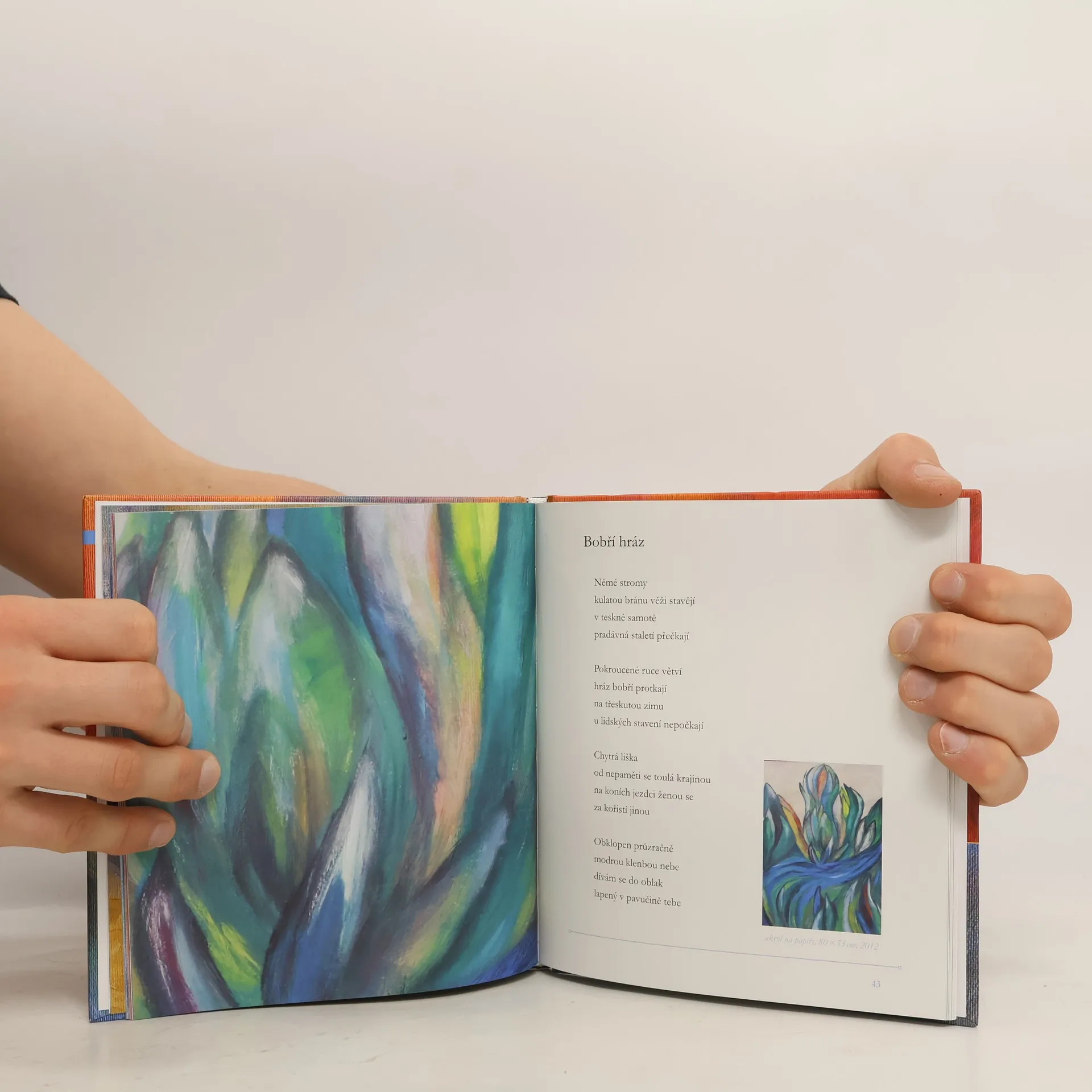 Autorka se zabývá postavením jedince ve společnosti a zkoumáním vzájemného vztahu člověka a přírody. Součástí básnické sbírky jsou její obrazy a grafické listy. Prolínání výtvarného vyjádření básně a básnického pojetí obrazu.