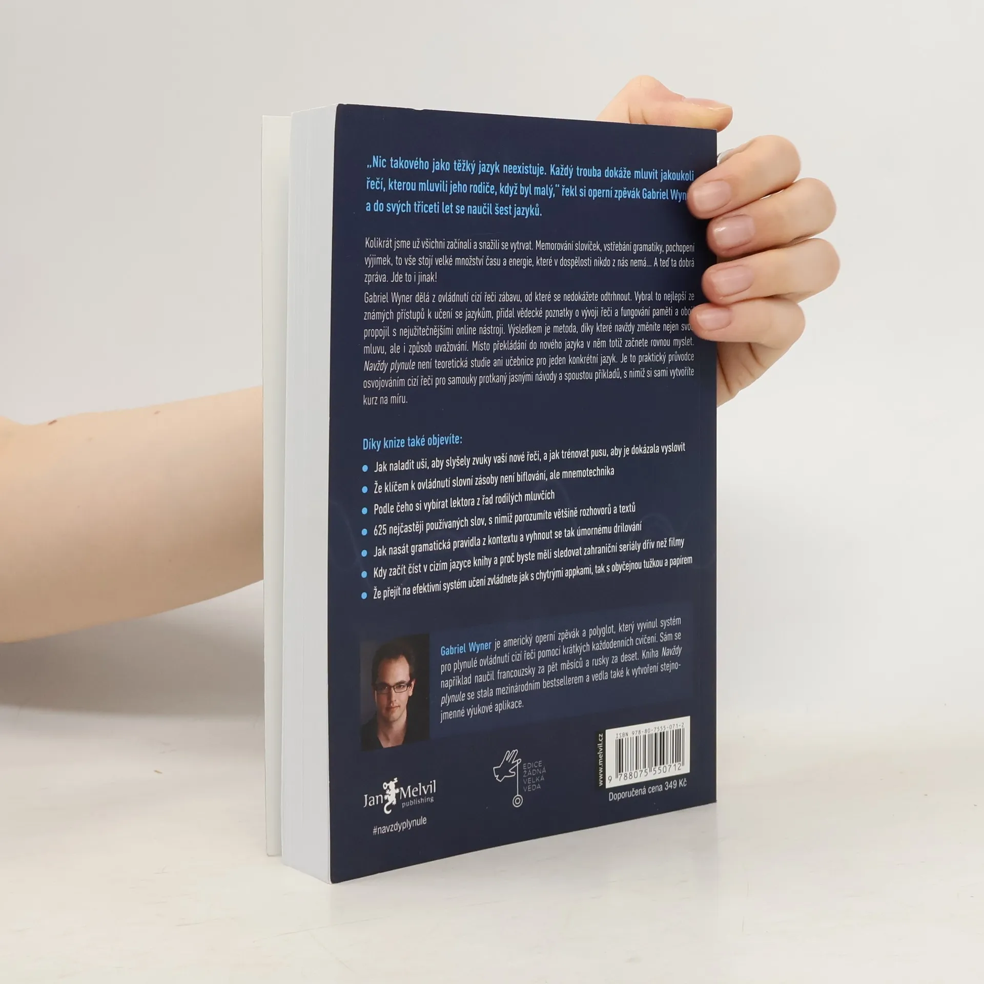 Vzdali jste učení se cizích jazyků? Nemáte čas a ještě k tomu vás úmorná gramatická cvičení nudí? A když už do hlavy něco dostanete, stejně to zase brzy zapomenete? Navždy plynule vaši skepsi vyléčí! Ukáže vám, jak se cizí řeč naučit efektivně, rychle, zábavně a natrvalo. Záchrana, že? Operní pěvec a polyglot Gabriel Wyner není pouhým teoretikem – již ve třiceti letech mluvil plynně šesti jazyky, které se zvládl naučit sám. A každý z nich navíc ovládl v řádu měsíců. Bohaté zkušenosti pak přetavil do nové učební metody pro samouky, která spočívá v krátkých denních trénincích, propojuje to nejužitečnější ze známých lingvistických přístupů s poznatky o fungování mozku a nezapomíná ani na pomoc zdarma dostupných online nástrojů. Navždy plynule vás naučí, jak naladit uši na nové zvuky, jak donutit ústa ke všem novým akrobaciím a jak si kousek po kousku uložit do dlouhodobé paměti vše: od jednoduchých slovíček až po složitá gramatická pravidla. A buďte bez obav, nuda přitom rozhodně nehrozí. Naopak, zábava je klíčem k úspěchu. Takže tentokrát si hru s cizími jazyky užijete a konečně se naučíte vyhrávat! Enfin! Endlich! ?????! Finally! Finalmente! Végre! Endelig! Nareszcie! În cele din urmă! ...