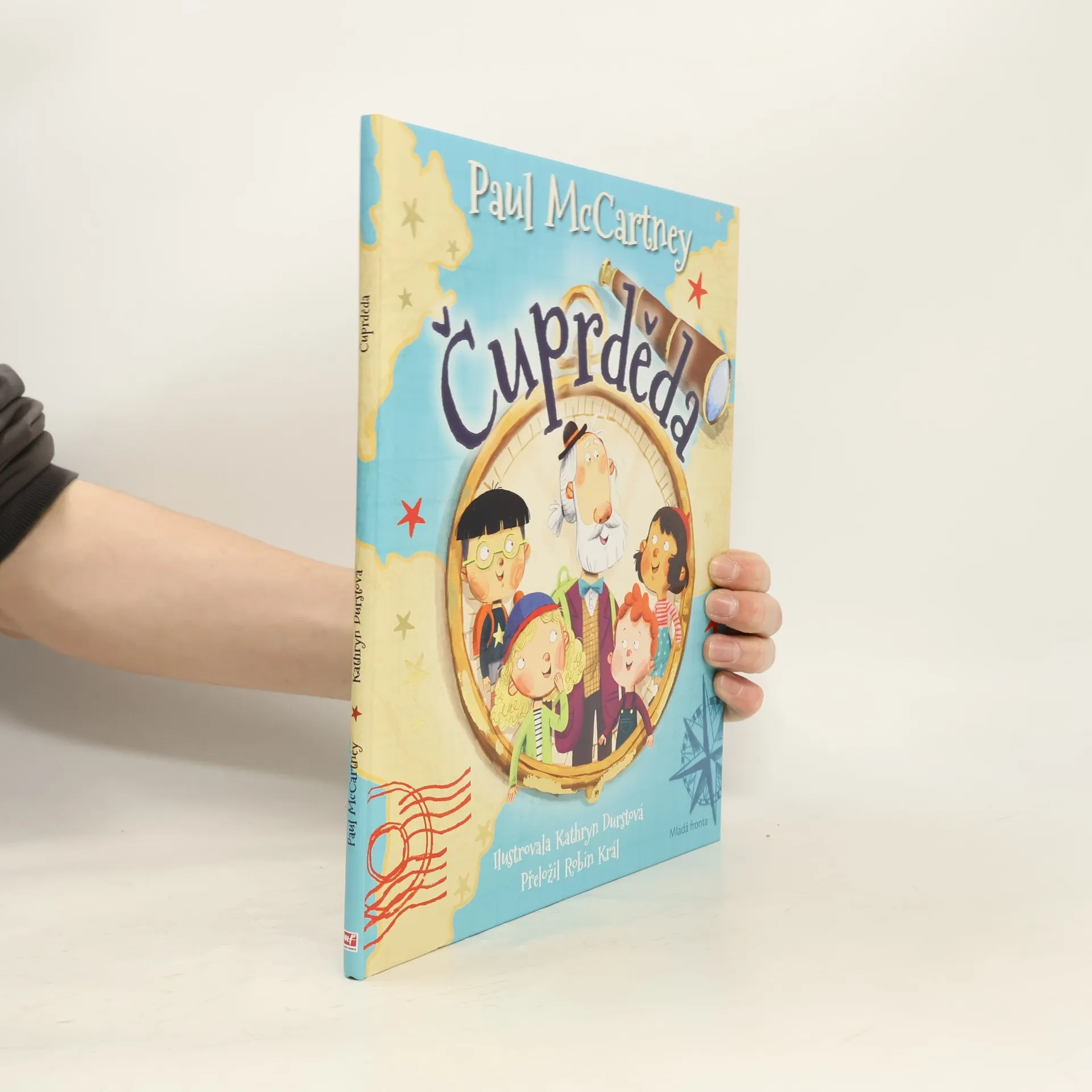 Čuprděda je báječný nevšední dědeček s kapsami plnými kouzelných triků. Takového dobrodruha jen tak někde nenajdete. Díky jeho zázračnému kompasu se čtyři vnoučata bleskově vypraví na cestu kolem celého světa. Pojďte se spolu s nimi svést na hřbetech létajících ryb, utíkat před stádem bizonů i před mrazivými lavinami. Autorem téhle krásné knížky je čuprděda Paul McCartney, který navždy změnil hudební svět s kapelou The Beatles.
