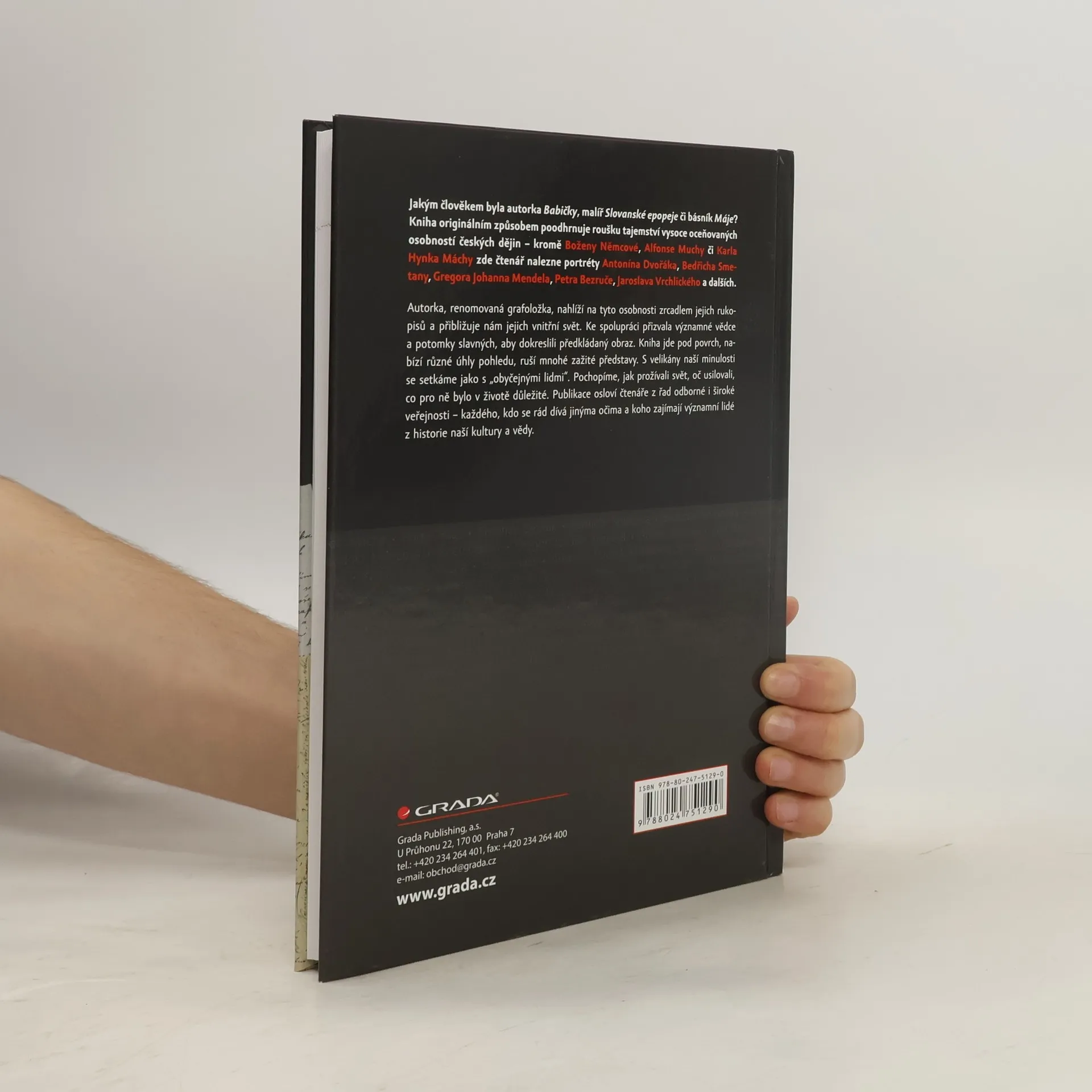 Autorka, renomovaná grafoložka, nahlíží na jednotlivé osobnosti zrcadlem jejich rukopisů a přibližuje nám jejich vnitřní svět. Ke spolupráci přizvala významné vědce a potomky slavných, aby dokreslili předkládaný obraz. Kniha jde pod povrch, nabízí různé úhly pohledu, ruší mnohé zažité představy. S velikány naší minulosti se setkáme jako s „obyčejnými lidmi“. Pochopíme, jak prožívali svět, oč usilovali, co pro ně bylo v životě důležité. Publikace osloví čtenáře z řad odborné i široké veřejnosti – každého, kdo se rád dívá jinýma očima a koho zajímají významné postavy z historie naší kultury a vědy.