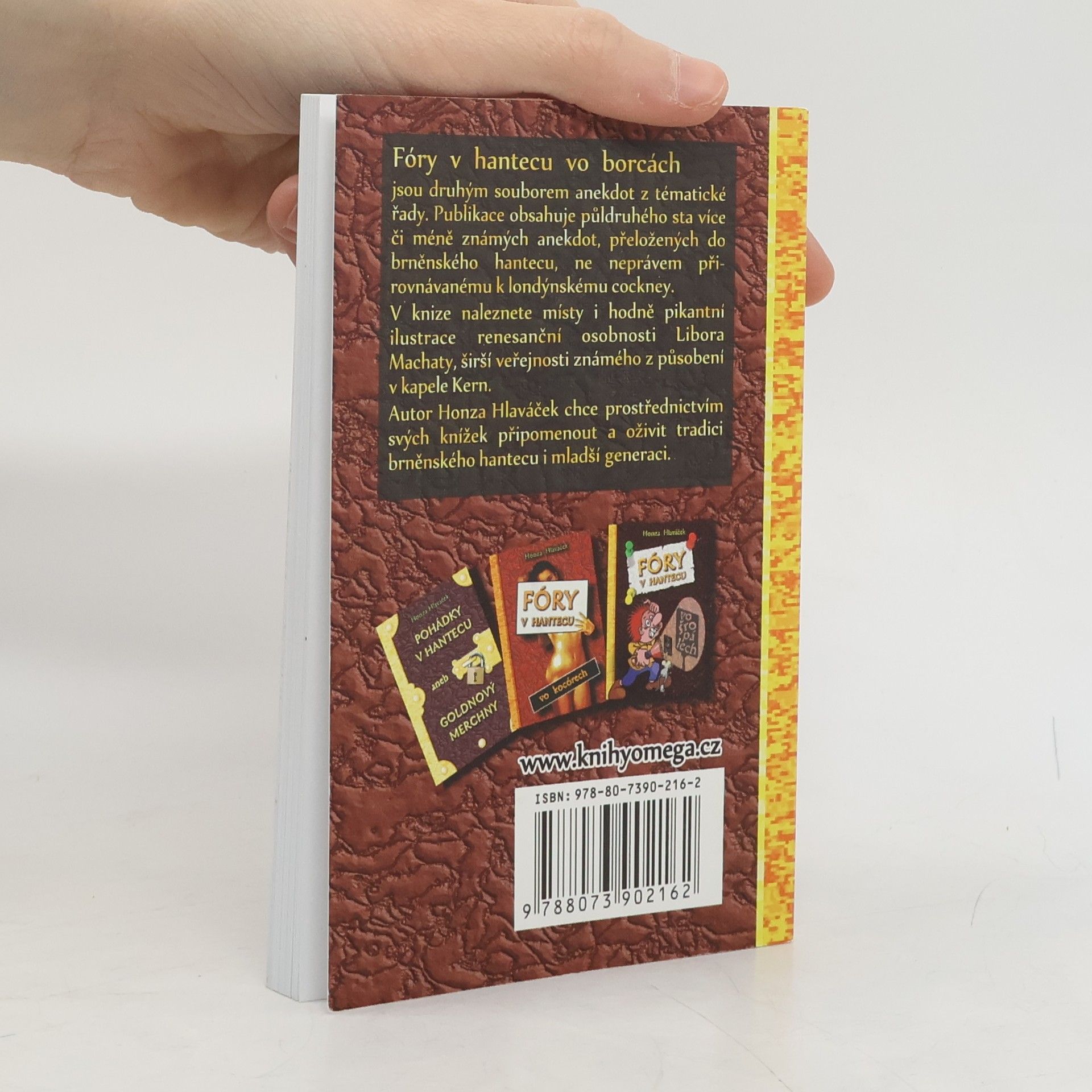 Jsou druhým souborem anekdot z tématické řady. Publikace obsahuje půldruhého sta více či méně známých anekdot, přeložených do brněnského hantecu, ne neprávem přirovnávanému k londýnskému cockney. V knize naleznete místy i hodně pikantní ilustrace renesanční osobnosti Libora Machaty, širší veřejnosti známého z působení v kapele Kern. Autor Honza Hlaváček chce prostřednictvím svých knížek připomenout a oživit tradici brněnského hantecu i mladší generaci.