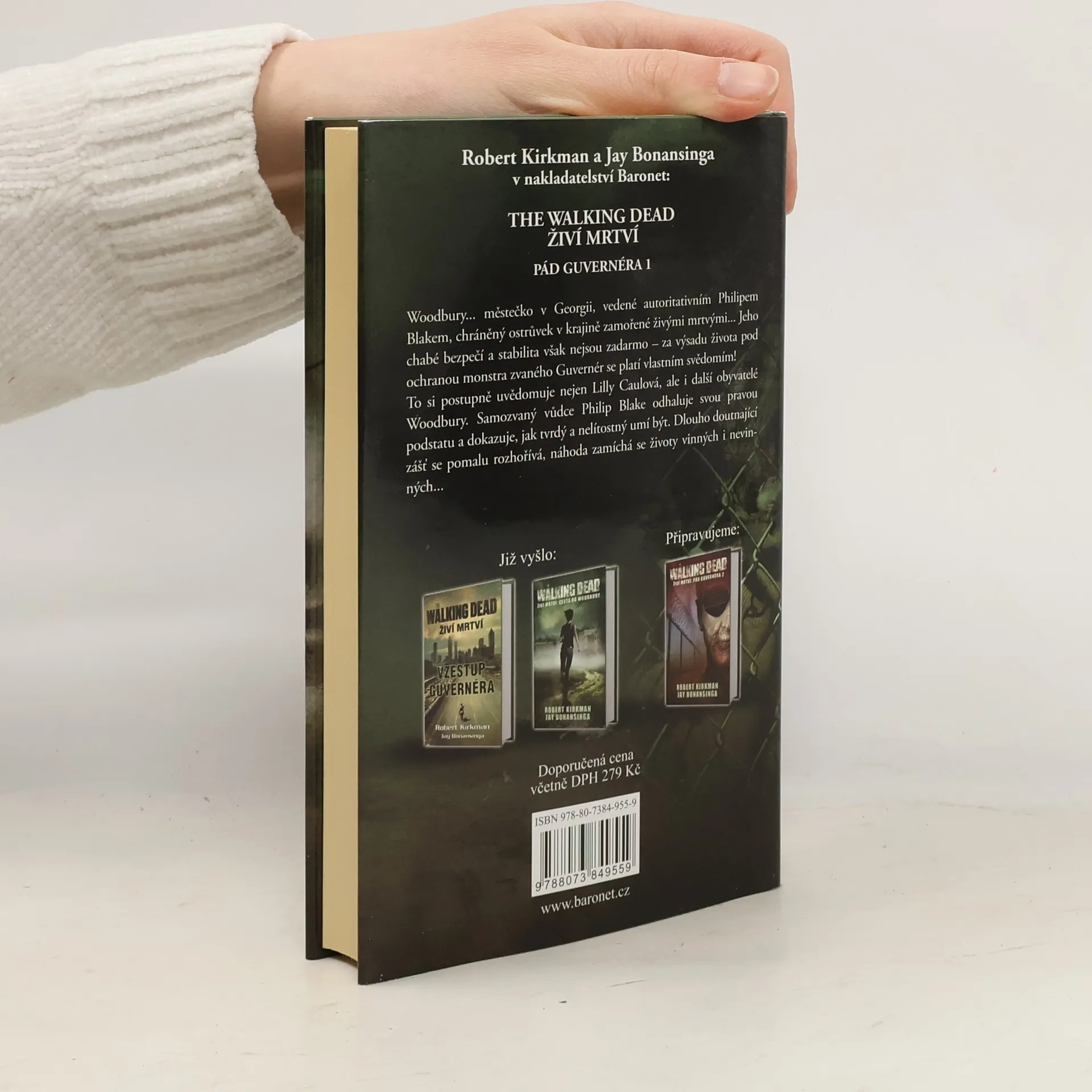V románu Pád Guvernéra, třetím pokračování knižního cyklu ze světa živých mrtvých, se vracíme do městečka Woodbury v georgijském okrese Meriwether. Od propuknutí „nákazy“, kdy svět zamořily věčně hladové oživlé mrtvoly, uplynuly dva roky. Příval zombií neustává, krajina pustne, lidé v každodenním zápase o vlastní existenci ztvrdli a okorali a zdroje začínají docházet... Woodbury ale vládne železnou rukou samozvaný vůdce, Philip Blake zvaný Guvernér, a ten si stanovil posvátný úkol, ochránit tuhle malou komunitu a postarat se o své ovečky za všech okolností. Vyžaduje jen jedno: každý musí podřídit své vlastní potřeby potřebám celku - a o těch rozhoduje on sám! Obyvatelé městečka uznávají Guvernérovu svrchovanou autoritu výměnou za relativní bezpečí, které jim zajišťuje, a raději se na nic neptají. Jen ti vnímavější poznávají jeho utajenou pravou tvář, zjišťují, jak nelítostný a krutý umí být. To na vlastní kůži zakusí i tři vetřelci, kteří se zčistajasna objeví před hradbami Woodbury bůhvíodkud a s bůhvíjakým záměrem...