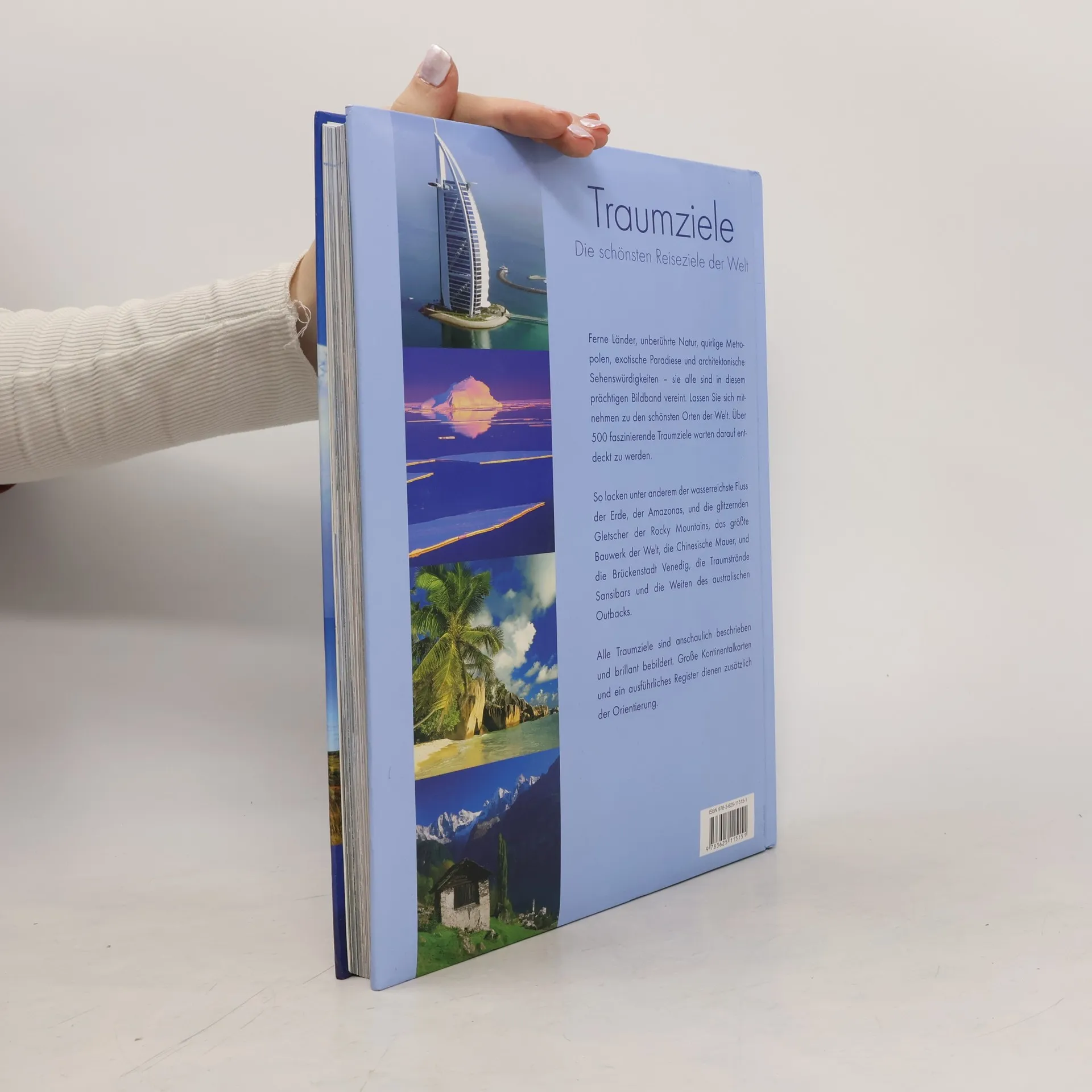 Ferne Länder, unberührte Natur, quirlige Metropolen, exotische Paradiese und architektonische Sehenswürdigkeiten. Sie alle sind in diesem prächtigen Bildband vereint. Lassen Sie sich mitnehmen zu den schönsten Orten der Welt. Über 500 faszinierende Traumziele warten darauf entdeckt zu werden. So locken unter anderem der wasserreichste Fluss der Erde, der Amazonas, und die glitzernden Gletscher der Rocky Mountains, das größte Bauwerk der Welt, die Chinesische Mauer, und die Brückenstadt Venedig, die Traumstrände Sansibars und die Weiten des australischen Outbacks. Alle Traumziele sind anschaulich beschrieben und brillant bebildert. Große Kontinentalkarten und ein ausführliches Register dienen zusätzlich der Orientierung.