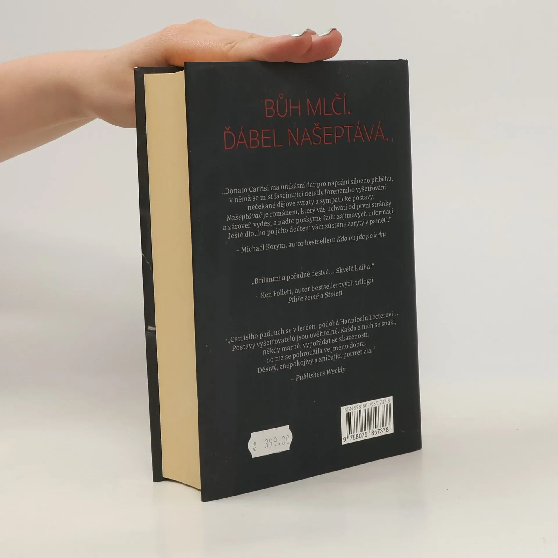 V lese je nalezeno pohřbených šest useknutých rukou. Jsou uspořádány do tajemného kruhu a zdá se, že patří chybějícím dívkám mezi 8 a 13 lety. Zbytky těl ale nikde nalezeny nebyly. Případ dostal kriminolog Goran Gavila. Nerudný, vzpurný muž musí spolupracovat s mladou policistkou Milou Vasquezovou, která má pověst odborníka na pohřešované děti. Má totiž svou vlastní tragickou minulost, která ji zanechala poškozenou a neschopnou něco cítit. Je to výbušný, ale podivným způsobem fungující vztah. A když v lese odhalí další tajemství, stále víc mají své životy navzájem v rukou. Úchvatný literární thriller, který smetl Itálii. Našeptávač rozpoutal podobnou bouři jako romány Stiega Larssona. Tento román je výjimečný - provokuje, je inteligentní a nepoddajný.