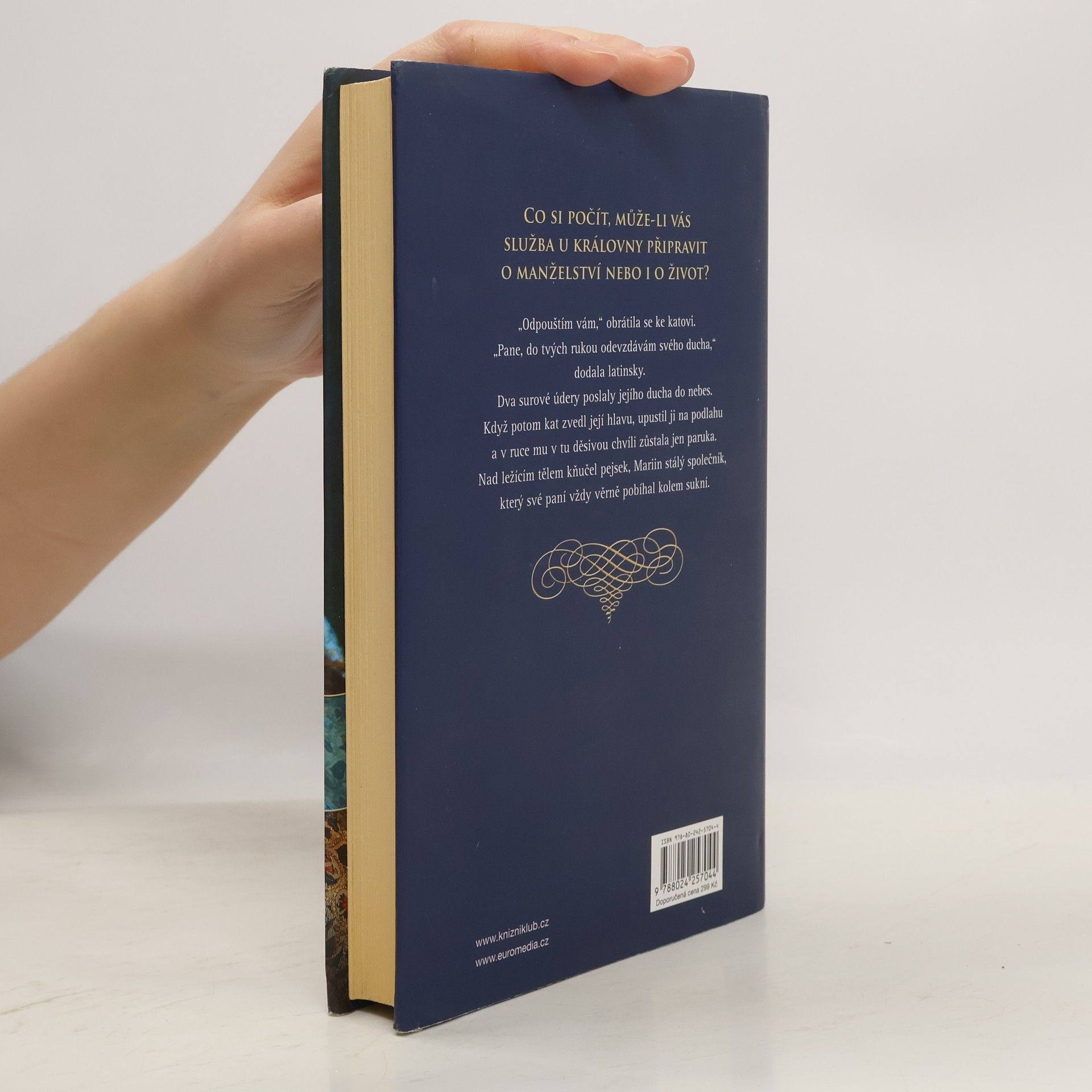 Co si počít, když vás služba u královny může připravit o manželství i o život? Roku 1565 se sedmnáctiletá Elin vydává ze Švédska na nebezpečnou cestu do Anglie. Před sebou má dobrodružství, kterým vystoupá do závratných výšek tudorovské moci – stane se nejvýše postavenou dvorní dámou královny Alžběty. Román bestsellerové autorky představuje napínavý příběh lásky, klamu a elegance. Působivě popisuje léta, která předcházela popravě skotské královny Marie Stuartovny, a brilantně ukazuje, co znamená zrada.