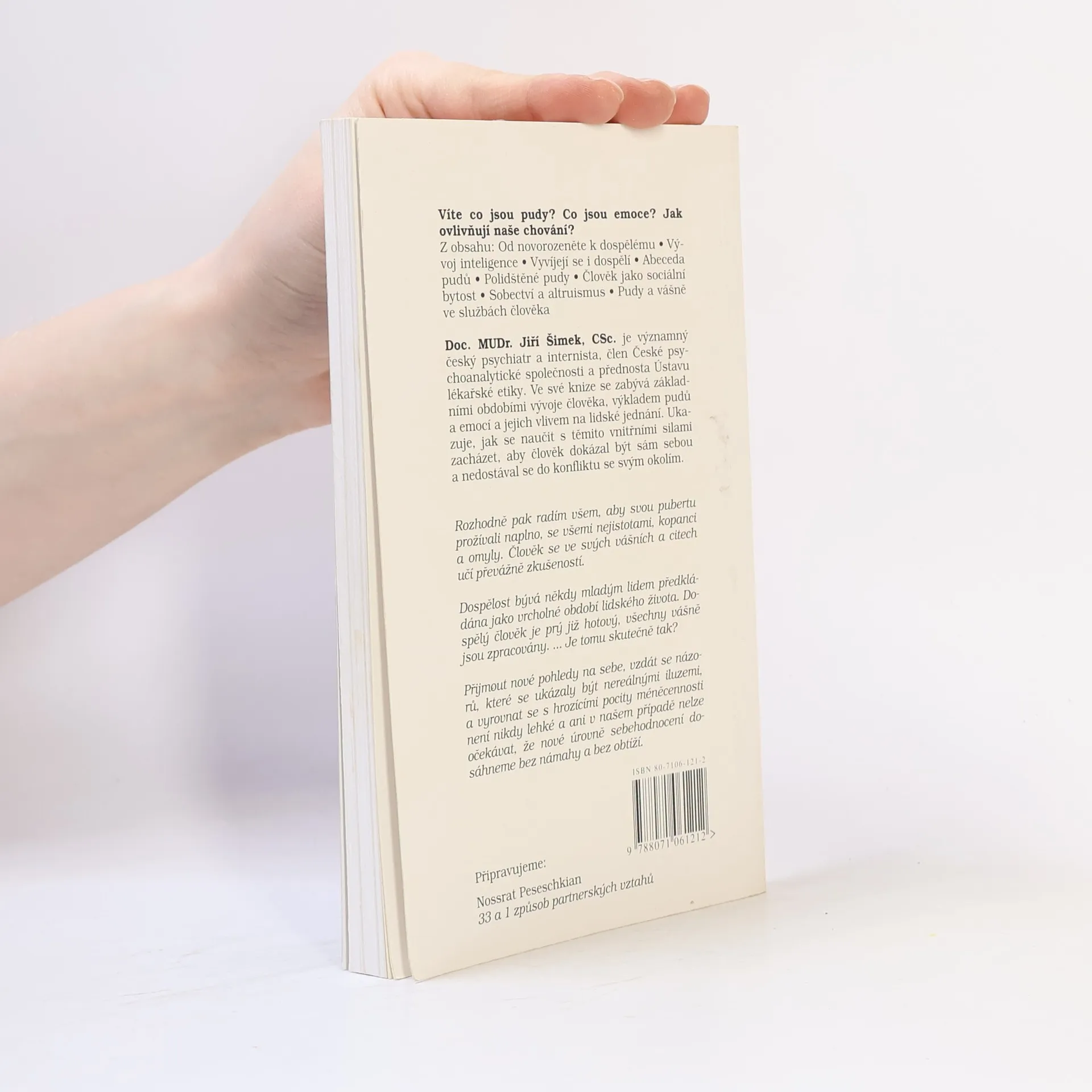Jak jim porozumět a jak s nimi žít Ve své knize se autor zabývá základními obdobími vývoje člověka, výkladem pudů a emocí a jejich vlivem na lidské jednání. Ukazuje, jak se naučit s těmito vnitřními silami zacházet, aby člověk dokázal být sám sebou a nedostával se do konfliktu se svým okolím. Z obsahu: Od novorozeněte k dospělému - Vývoj inteligence - Vyvíjejí se i dospělí - Abeceda pudů - Polidštěné pudy - Člověk jako sociální bytost - Sobectví a altruismus - Pudy a vášně ve službách člověka