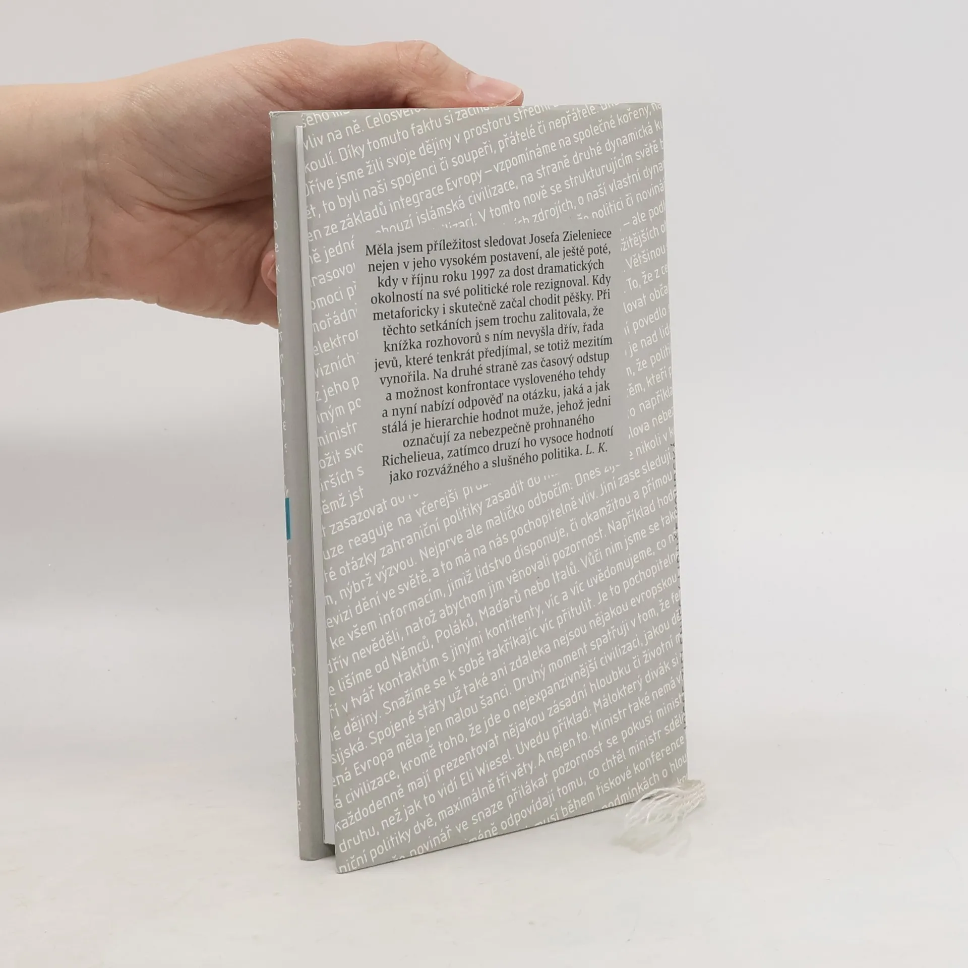 Kniha rozhovorů s bývalým ministrem zahraničních věcí vznikala v průběhu posledních tří let. J. Zieleniec odpovídá na řadu otázek týkajících se českého politického života, ale především odhaluje svůj pohled na svět a jeho problémy. V jednotlivých kapitolách hovoří o úloze národů na konci dvacátého století, o socialismu a kapitalismu, o náboženství, o rodině, o smrti, o přátelství a o dalších převážně nadčasových tématech.