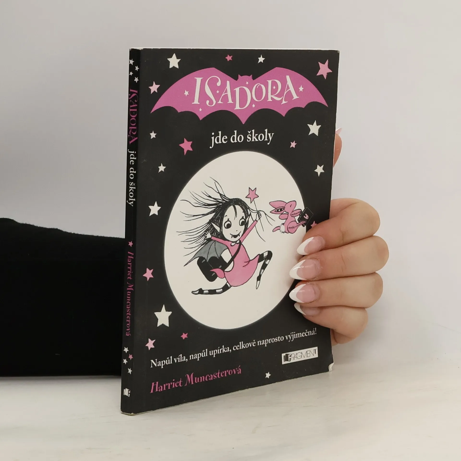 Isadora Měsíčková je naprosto výjimečná holčička. Jak by taky ne, když tatínek je upír a maminka víla. Isadora podědila od obou něco. Miluje noc, netopýry a černou barvu, ale taky přírodu, svoji kouzelnou hůlku a růžovou. Teď má Isadora nastoupit do první třídy. Kam ale patří? Do školy pro upíry, nebo pro víly?