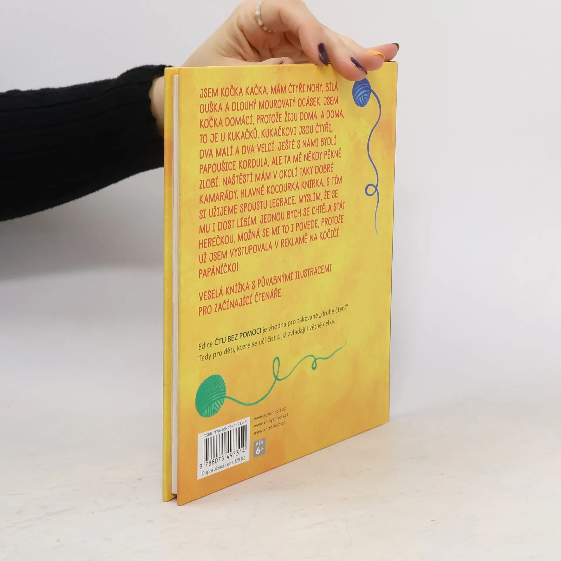 Veselé příhody kočky Kačky, která zažívá všední i nevšední dobrodružství se svou rodinou Kukačkových i se zvířecími kamarády ze sousedství. V první části knihy nás Kačka seznamuje s rodinou, do níž kromě táty, mámy a dvou dětí patří i papoušek jménem Kordula, ve druhé části sní Kačka o tom stát se herečkou, a skutečně nakonec zazáří v televizní reklamě na kočičí granule. Kniha uznávané české autorky, vyprávěná vtipným a srozumitelným jazykem, je ideální pro děti, které už jsou schopné číst jednodušší texty bez pomoci.