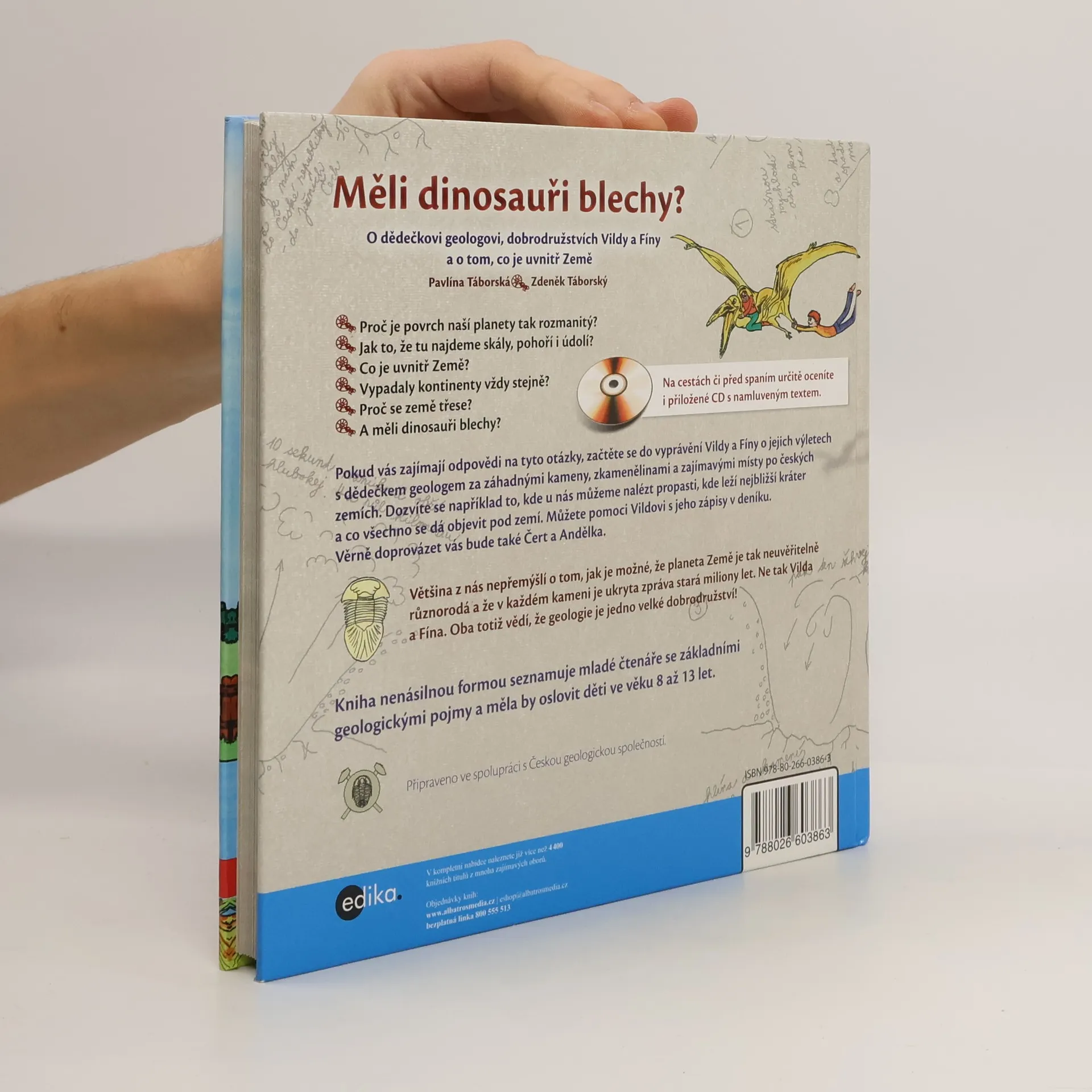 Proč je povrch naší planety tak rozmanitý? * Jak to, že tu najdeme skály, pohoří i údolí? * Co je uvnitř Země? * Vypadaly kontinenty vždy stejně? * Proč se země třese? * A měli dinosauři blechy? Pokud vás zajímají odpovědi na tyto otázky, začtěte se do vyprávění Vildy a Fíny o jejich výletech s dědečkem geologem za záhadnými kameny, zkamenělinami a zajímavými místy po českých zemích. Dozvíte se například to, kde u nás můžeme nalézt propasti, kde leží nejbližší kráter a co všechno se dá objevit pod zemí. Můžete pomoci Vildovi s jeho zápisy v deníku. Věrně doprovázet vás bude také Čert a Andělka. Většina z nás nepřemýšlí o tom, jak je možné, že planeta Země je tak neuvěřitelně různorodá a že v každém kameni je ukryta zpráva stará miliony let. Ne tak Vilda a Fína. Oba totiž vědí, že geologie je jedno velké dobrodružství! Kniha nenásilnou formou seznamuje mladé čtenáře se základními geologickými pojmy a měla by oslovit děti ve věku 8 až 13 let.