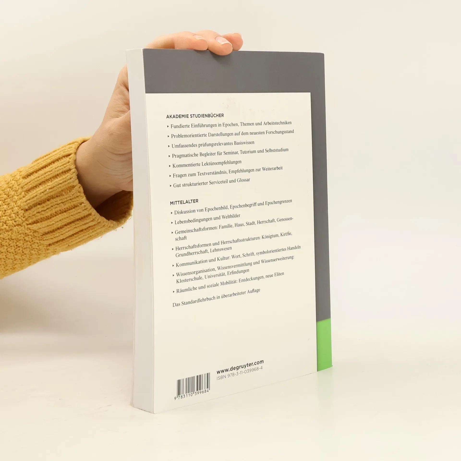 Mittelalter – faszinierende Welt der Schlösser, Ritter und Gaukler? Oder barbarische Welt der Kreuzzüge, Scheiterhaufen und Hexenverbrennungen? In unseren Köpfen existieren beide Mittelalter-Bilder. Der wissenschaftliche Blick ist nüchterner, aber nicht weniger faszinierend. Lesen Sie im historischen Epochenband über das Mittelalter als Epoche zwischen Altertum und Neuzeit, über seine Charakteristika und Eigenheiten: - Diskussion von Epochenbild, Epochenbegriff und Epochengrenzen - Lebensbedingungen und Weltbilder - Gemeinschaftsformen: Familie, Haus, Stadt, Herrschaft, Genossenschaft - Herrschaftsformen und Herrschaftsstrukturen: Königtum, Kirche, Grundherrschaft, Lehnswesen - Kommunikation und Kultur: Wort, Schrift, symbolorientiertes Handeln - Wissensorganisation, Wissensvermittlung und Wissenserweiterung: Klosterschule, Universität, Erfindungen -Räumliche und soziale Mobilität: Entdeckungen, neue Eliten Harald Müller legt sein maßstabsetzendes Lehrbuch in durchgesehener und aktualisierter Auflage vor.