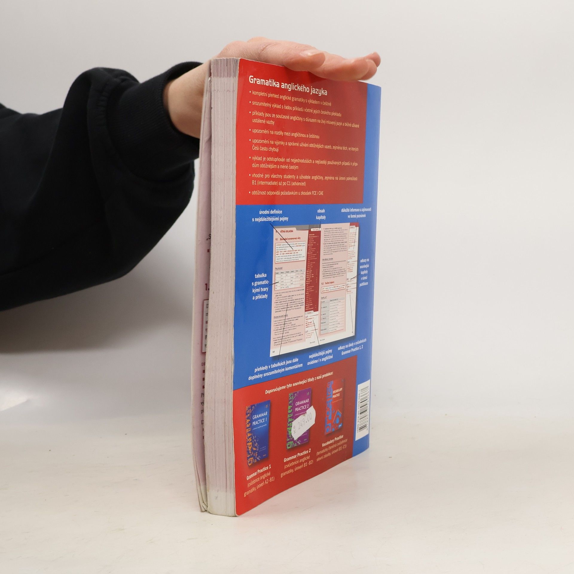 Ucelený přehled gramatiky anglického jazyka - srozumitelné a přehledné zpracování - všechny důležité gramatické jevy jsou podrobně vysvětleny v českém jazyce a doplněny množstvím konkrétních příkladů z živé mluvené angličtiny - kniha je doplněna přehlednými tabulkami s gramatickými tvary a jejich použitím, dále odkazy na odpovídající úkoly v cvičebnicích Grammar Practice 1, 2 a přílohovou částí, kterou mj. tvoří přehledy nepravidelných a frázových sloves s příklady jejich použití - publikace je určena všem, kteří se věnují studiu angličtiny.