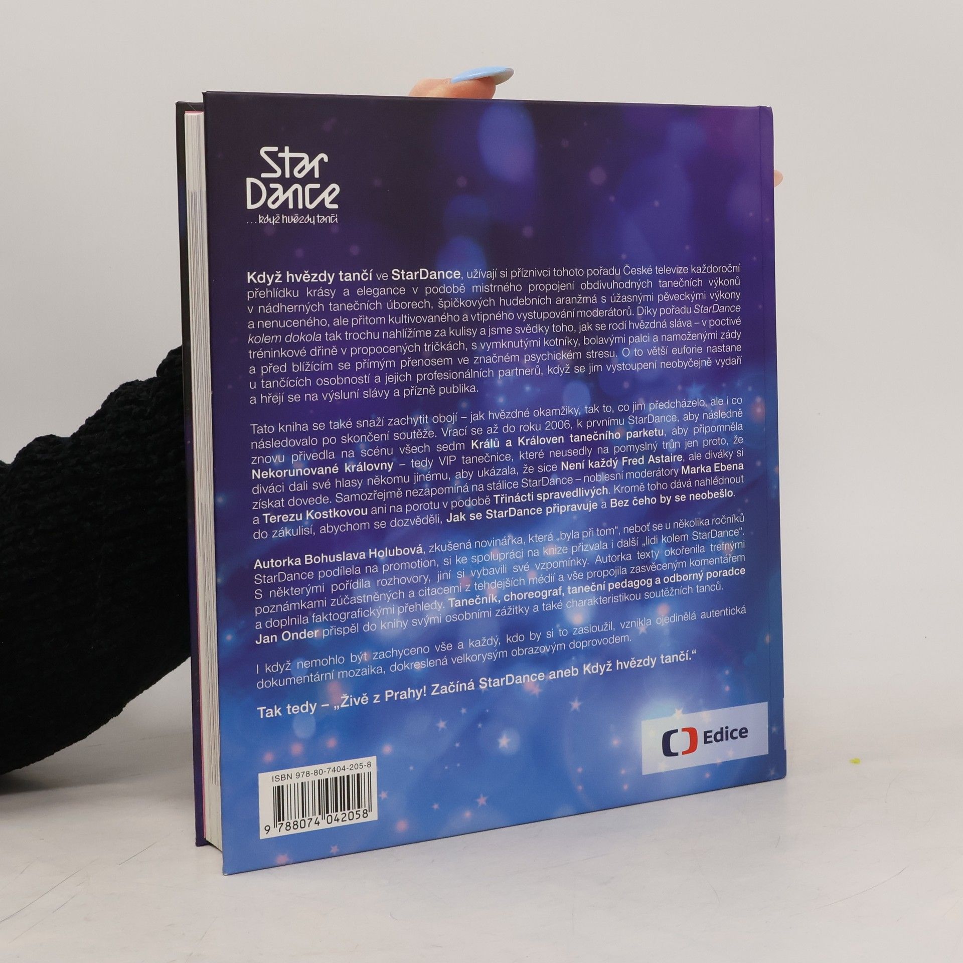 Ojedinělá dokumentární mozaika rozhovorů, autentických vzpomínek a dobových výroků je doplněna bohatým obrazovým materiálem. Když hvězdy tančí ve StarDance, diváci si užívají přehlídku krásy a elegance, která spojuje úchvatné taneční výkony, nádherné kostýmy, špičkovou hudbu a vtipné moderování. Od podzimu do Vánoc se vytváří podmanivá atmosféra, která přenáší hvězdné okamžiky do domácností, kde rodiny fandí svým favoritům. Pořad odhaluje zákulisí a ukazuje, jak se rodí hvězdná sláva prostřednictvím náročného tréninku, bolesti a psychického stresu. Euforie tančících osobností a jejich partnerů, když se vystoupení vydaří, je nezapomenutelná. Kniha zachycuje jak hvězdné okamžiky, tak to, co jim předcházelo a následovalo, a vrací se k prvnímu ročníku v roce 2006. Připomíná Krále a Královny tanečního parketu a VIP tanečnice, které nezískaly vítězství, ale přesto si získaly diváky. Nechybí ani stálice pořadu, moderátoři a porota. Autorka Bohuslava Holubová, zkušená novinářka, spolupracovala s lidmi kolem StarDance, přičemž zahrnula rozhovory a vzpomínky. Texty doplnila citacemi a svým komentářem, zatímco Jan Onder přispěl osobními zážitky a charakteristikou soutěžních tanců.