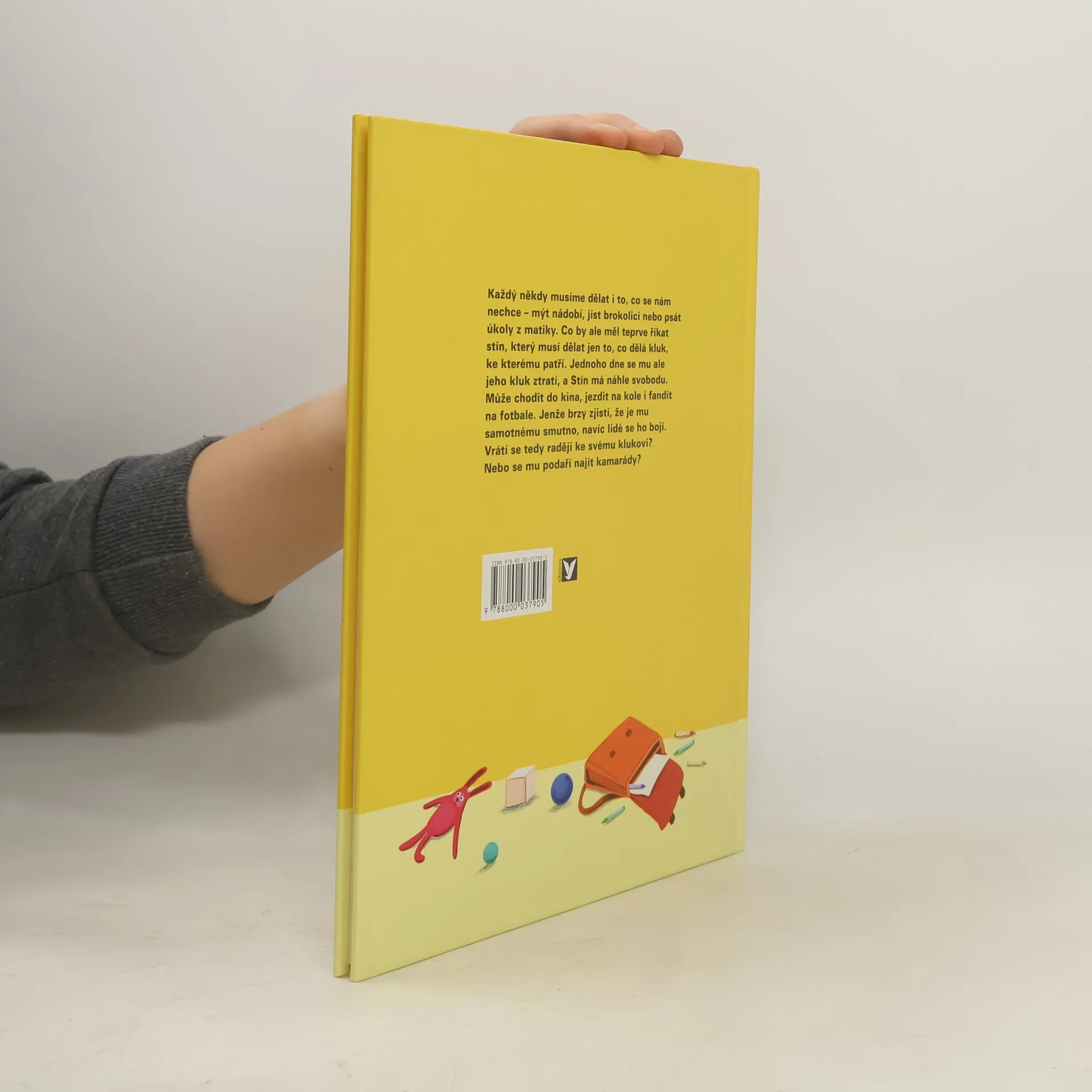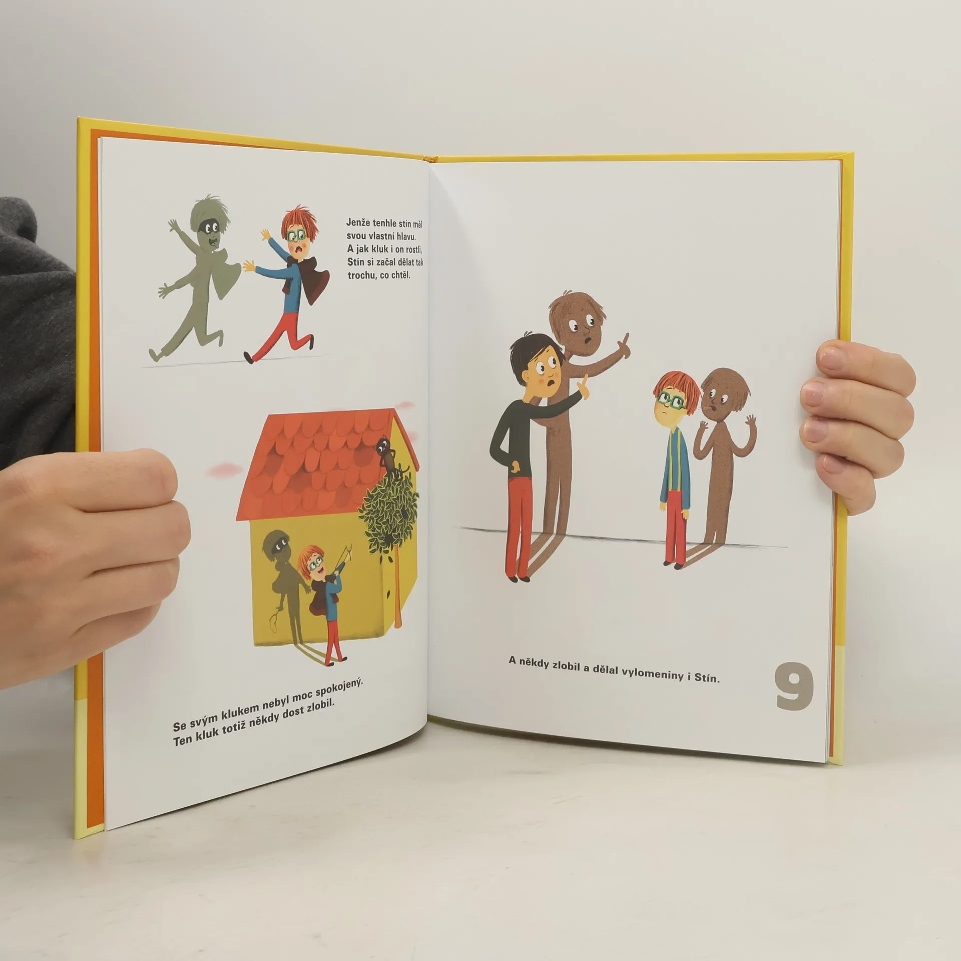 Každý někdy musíme dělat, co se nám nechce – mýt nádobí, jíst brokolici nebo psát úkoly z matiky. Co by ale měl teprve říkat stín kluka, který musí dělat jen to, co dělá kluk, ke kterému patří. Jednoho dne se mu ale jeho kluk ztratí, a Stín má náhle svobodu. Může chodit do kina, jezdit na kole i fandit na fotbale. Jenže brzy zjistí, že je mu samotnému smutno, navíc lidé se ho bojí. Vrátí se tedy raději ke svému klukovi? Nebo se mu podaří najít kamarády?