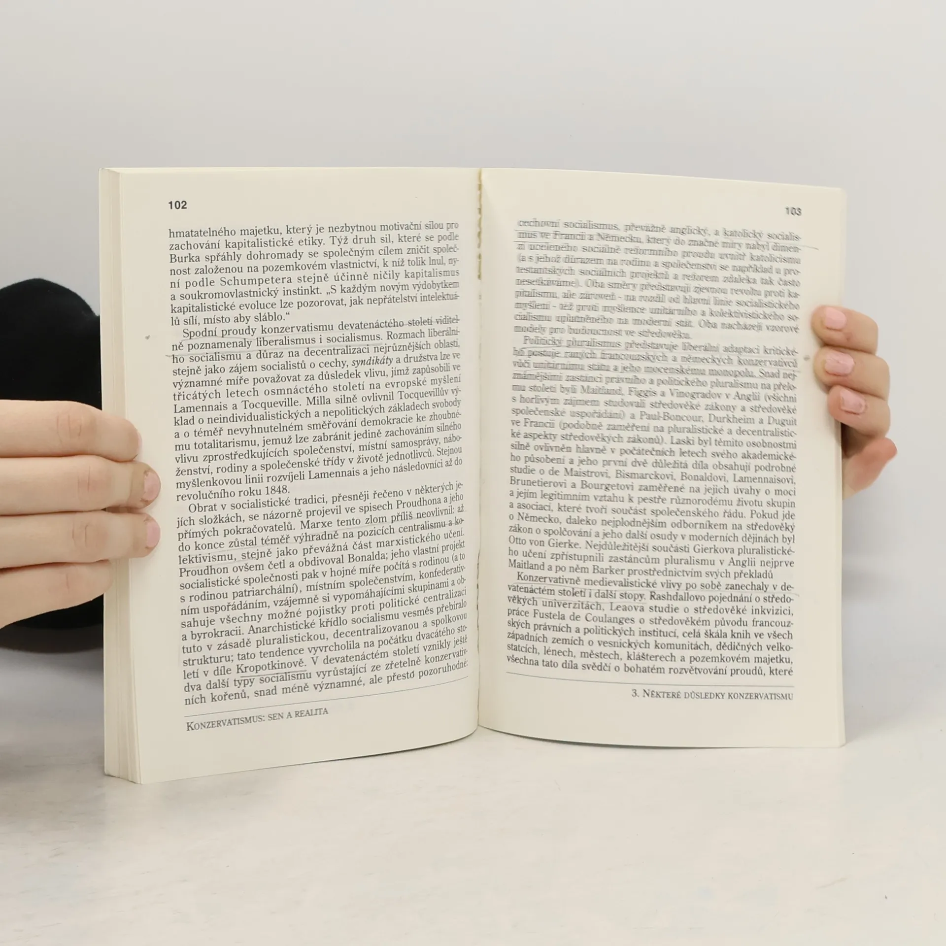 Americkému filosofu a sociologu Robertu Nisbetovi se v této čtivé analytické rozpravě podařilo téměř nemožné: precizně definovat a srozumitelně vysvětlit politický konzervatismus. Konzervatismus patří spolu se socialismem a liberalismem ke třem hlavním politickým ideologiím současnosti, avšak na rozdíl od svých protivníků se vzpírá snadné definici, dokonce se sám za ideologii ani nepovažuje. Vychází totiž z přesvědčení, že jsme formováni tradicí a loajalitou vůči civilizaci a národní kultuře, z níž pocházíme. Že z ní máme vybírat všechno prověřené a zásadní – nejen proto, že jsme „trpaslíci na ramenou gigantických předchůdců“ a že pravá „politika znamená dát hlas mrtvým,“ ale díky vědomí, že nepochopíme, kde jsme, natož kam jdeme, nepochopíme-li, kde jsme byli až dosud. Konzervativní instinkt (solidní předsudek) „lze přirovnat k chabé naději, že svět může být lepší, která skomírá po boku zdrcujícího přesvědčení, že všechno může být daleko horší.“ Nisbet v tradici Edmunda Burkeho dokona