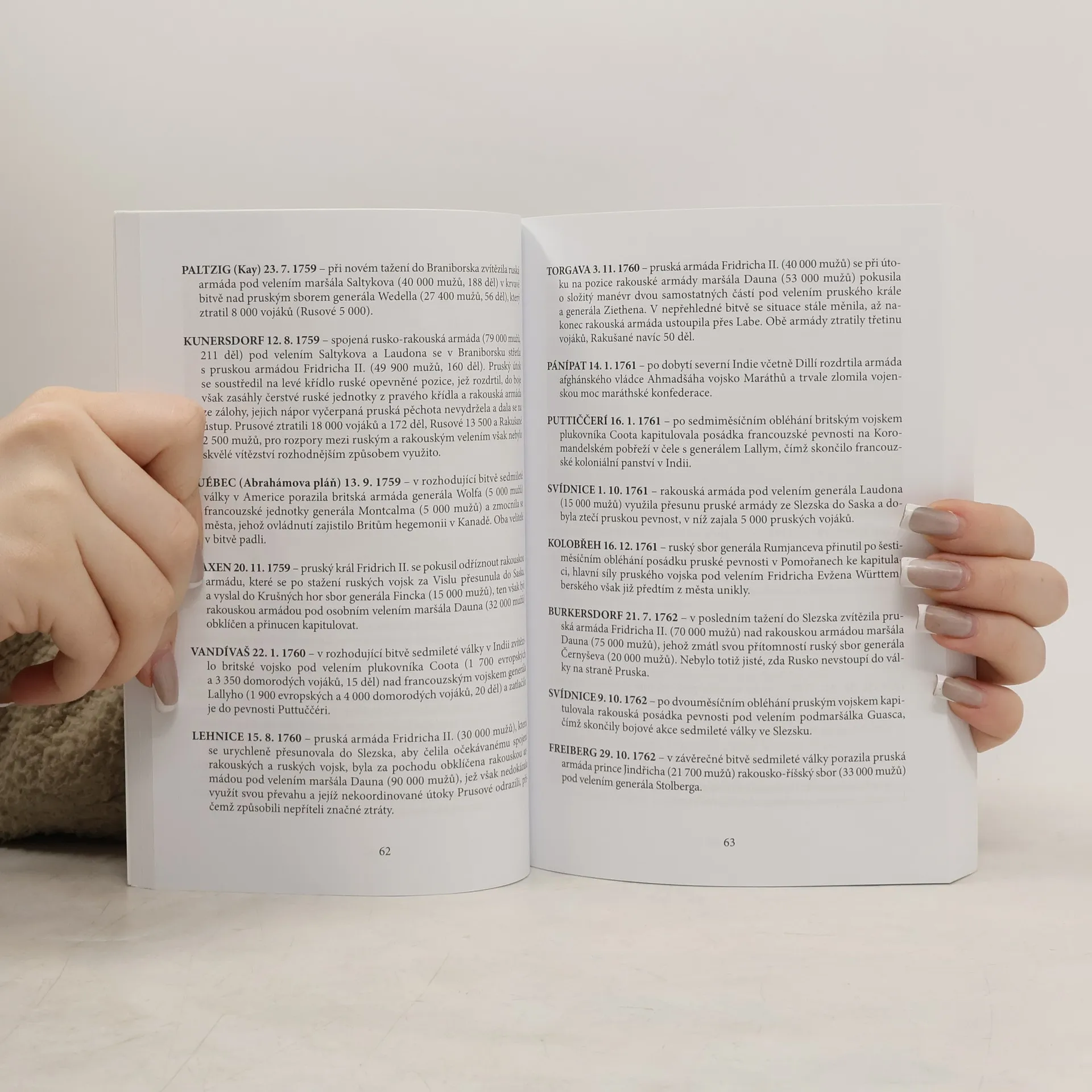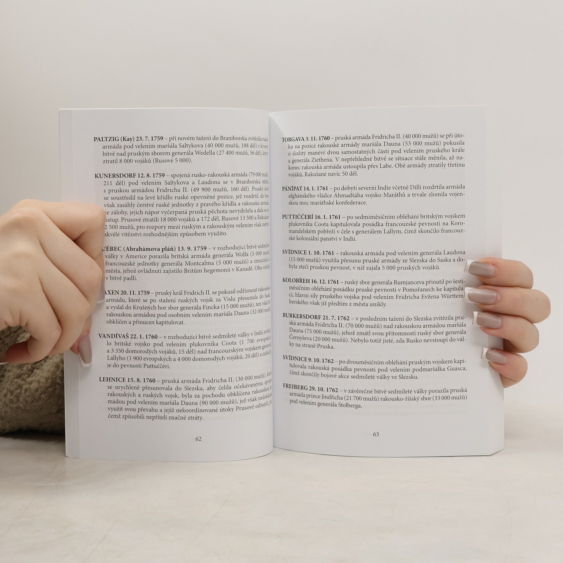 Kniha obsahuje souhrn kapitol týkajících se pozemních bitev starověku, středověku, 17., 18., 19. a 20. století a dále námořních bitev do roku 1900 a ve 20. století. Další část je věnována osobnostem, tedy admirálům a námořním velitelům do r. 1900 a ve 20. století, vojevůdcům starověku, středověku a novověku, vojevůdcům 20. století a nakonec též vojákům v politice 20. století.