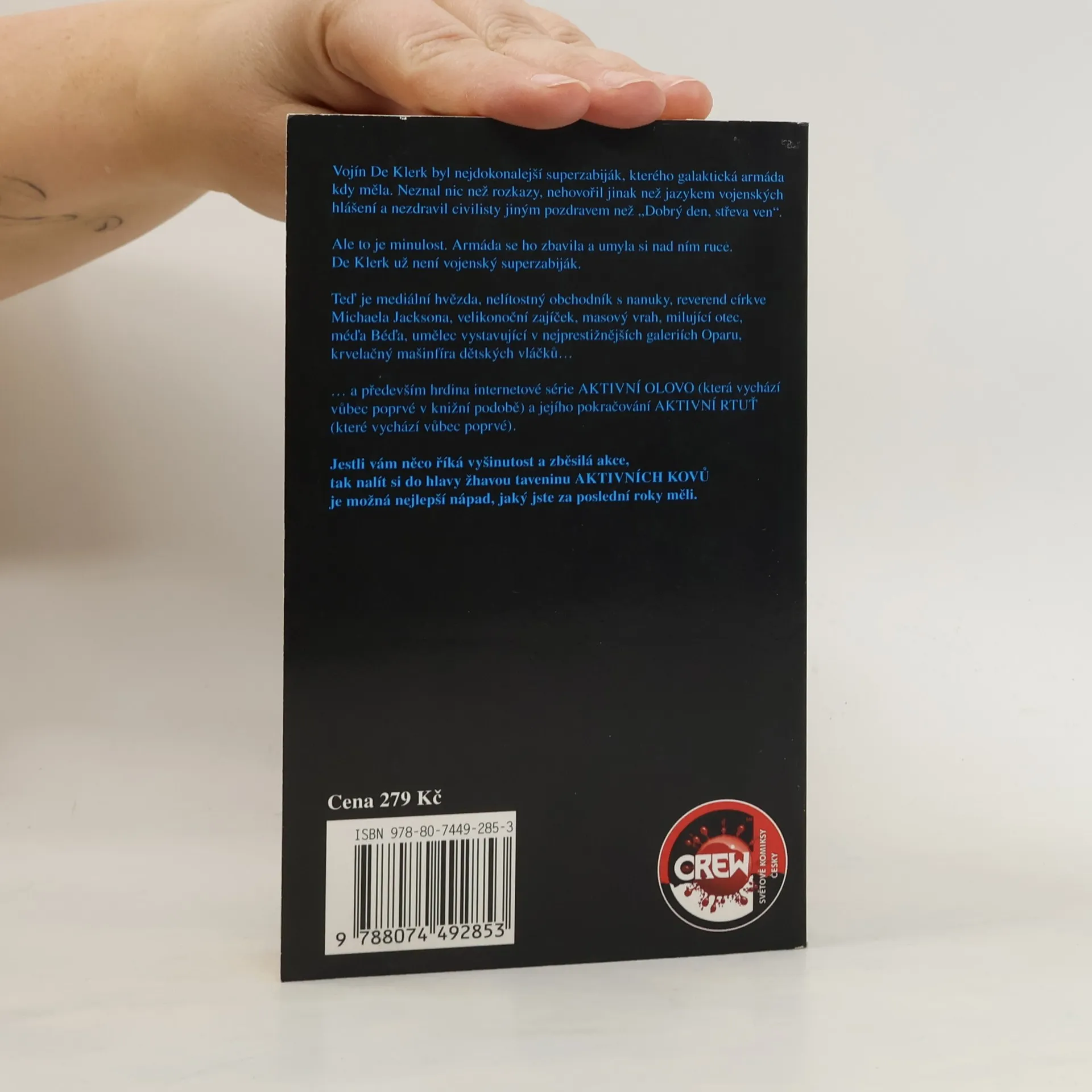 Vojín De Klerk byl nejdokonalejší superzabiják, kterého galaktická armáda kdy měla. Neznal nic než rozkazy, nehovořil jinak než jazykem vojenských hlášení a nezdravil civilisty jiným pozdravem než „Dobrý den, střeva ven“. Ale to je minulost. Armáda se ho zbavila a umyla si nad ním ruce. De Klerk už není vojenský superzabiják. Teď je mediální hvězda, nelítostný obchodník s nanuky, reverend církve Michaela Jacksona, velikonoční zajíček, masový vrah, milující otec, méďa Béďa, umělec vystavující v nejprestižnějších galeriích Oparu, krvelačný mašinfíra dětských vláčků...