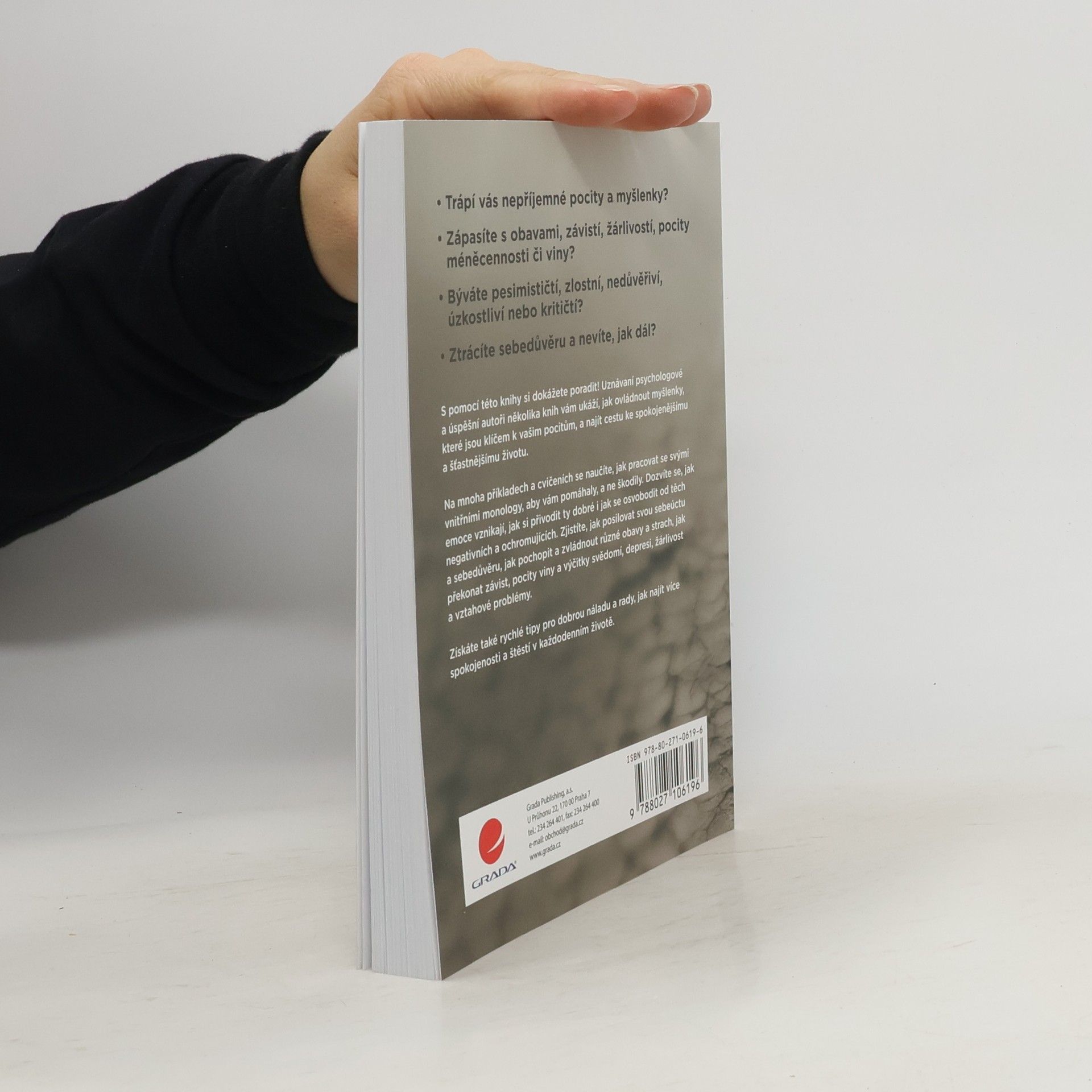 Zápasíte s obavami, závistí, žárlivostí, pocity méněcennosti či viny? Býváte pesimističtí, zlostní, nedůvěřiví nebo kritičtí? Ztrácíte sebedůvěru a nevíte, jak dál? Naučte se s touto knihou ovládnout své myšlenky, které jsou klíčem k vašim pocitům, a najít cestu ke spokojenému a šťastnému životu. Na mnoha příkladech a cvičeních se naučíte, jak pracovat se svými vnitřními monology, aby vám pomáhaly, a ne škodily. Dozvíte se, jak emoce vznikají, jak si přivodit ty dobré i jak se osvobodit od těch negativních a ochromujících. Zjistíte, jak posilovat svou sebeúctu a sebedůvěru, jak pochopit a zvládnout různé obavy a strach, jak překonat závist, pocity viny a výčitky svědomí, depresi, žárlivost a vztahové problémy. Získáte také rychlé tipy pro dobrou náladu a rady, jak najít více spokojenosti a štěstí v každodenním životě.