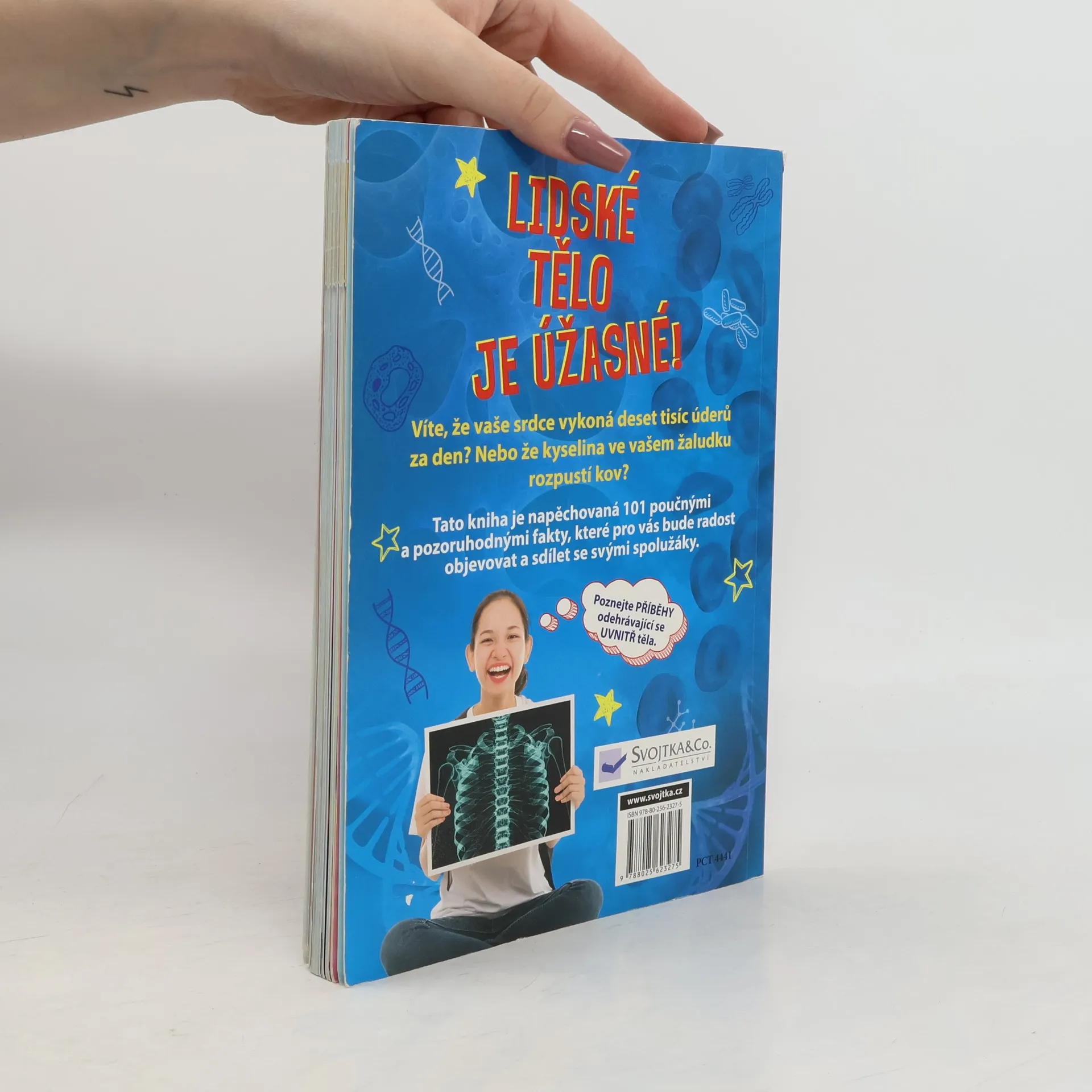 Sto zajímavostí o lidském těle a ještě jedna navíc! Zapomeňte na nudné učebnice biologie, tady na vás čekají nevšední a pozoruhodná fakta, o nichž jste zřejmě ani neměli tušení. Věděli jste, že kosti jsou z jedné pětiny tvořeny vodou? Že se písničky ukládají do jiné části mozku než ostatní vzpomínky? Že naše prsty nemají svaly? Že se během dne zmenšujeme? Nebo že můžeme mít alergickou reakci na vlastní telefon? Tato kniha je napěchována množstvím zábavných vědomostí a faktů a dozajista rozšíří vaše obzory. Přesvědčte se, co všechno vaše tělo během dne zvládne, a ohromte svými vědomostmi kamarády a spolužáky ve škole.