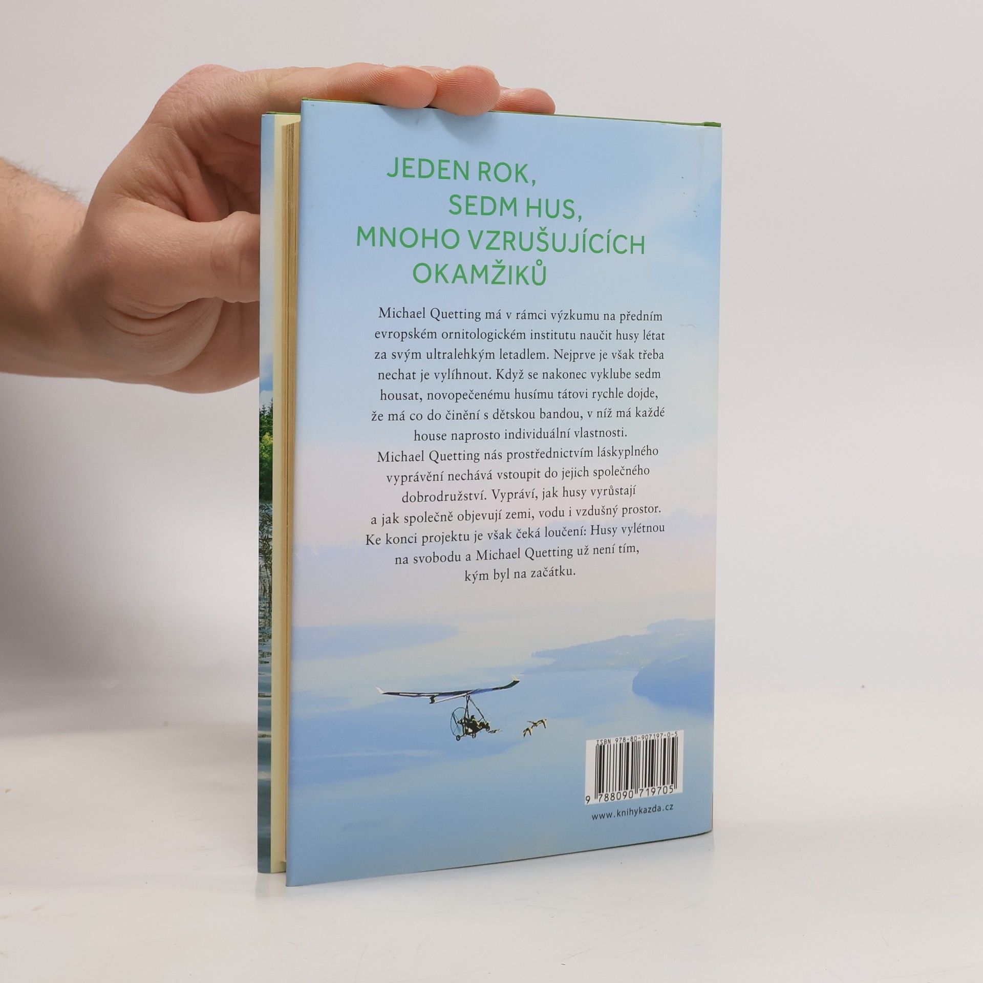 Michael Quetting má v rámci výzkumu na předním evropském ornitologickém institutu naučit husy létat za svým ultralehkým letadlem. Nejprve je však třeba nechat je vylíhnout. Když se nakonec vyklube sedm housat, novopečenému husímu tátovi rychle dojde, že má co do činění s bandou dětí, v níž má každé house naprosto individuální vlastnosti. Michael Quetting nás prostřednictvím láskyplného vyprávění nechává vstoupit do jejich společného dobrodružství. Vypráví, jak husy vyrůstají a jak společně objevují zemi, vodu i vzdušný prostor. Ke konci projektu je však čeká loučení: Husy vylétnou na svobodu a Michael Quetting už není tím, kým byl na začátku. Knihu provázejí půvabné fotografie, které zážitek ještě umocňují.