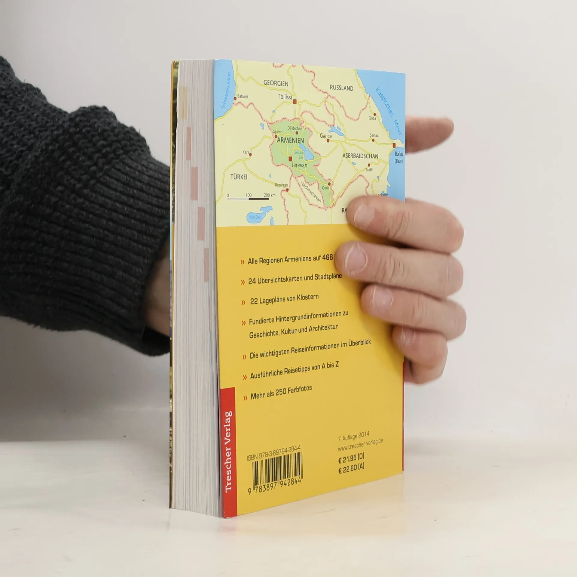 - - - Alle Regionen Armeniens auf 468 Seiten - 24 Übersichtskarten und Stadtpläne - 22 Lagepläne von Klöstern - Fundierte Hintergrundinformationen zu Geschichte, Kultur und Architektur - Die wichtigsten Reiseinformationen im Überblick - Ausführliche Reisetipps von A bis Z - Mehr als 250 Farbfotos - - - Das „Land der Steine“, wie Armenien von seinen Bewohnern liebevoll genannt wird, bietet atemberaubende Gebirgslandschaften und jahrtausendealte Baudenkmäler von unschätzbarem Wert. In den letzten Jahren konnte sich vielerorts eine touristische Infrastruktur entwickeln, und Armenien rückt verstärkt als Reiseziel für Kulturinteressierte, aber auch für Wanderer in den Blickpunkt. Neben ausführlichen Informationen zu Geschichte, Kultur und Baukunst bietet dieser Reiseführer viele praktische Tipps, zahlreiche Übersichtskarten, einen Sprachführer sowie Hinweise zu Unterkunft und Verpflegung. >>> Detaillierte Informationen und eine Voransicht dieses Reiseführers finden Sie auf www. trescher-verlag. de