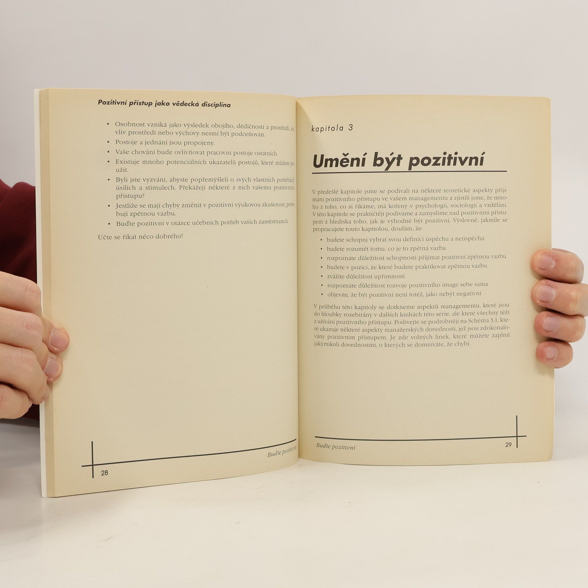 Pozitivní řízení a vůbec pozitivní nálada a morálka bývají u manažerů slovy velmi často skloňovanými při nejrůznějších příležitostech. Na první pohled se zdá, že pozitivně myslet nebo pozitivně řídit svůj tým musí umět snad každý člověk. Zdání ovšem klame. Podobně jako je prvotřídních řídících pracovníků opravdu poskrovnu, stejně nebývá v praxi na tucty ani těch, kteří v sobě dokáží "vybudit" pozitivní energii a umí ji přenášet dlouhodobě na druhé. Dá se taková věc naučit? Není to jen zděděná vlastnost? Ano, pozitivní myšlení se dá naučit, stejně jako každá manažerská dovednost, ale žádá si to samozřejmě určitý čas. V knize Buďte pozitivní se seznámíte s tím, že pozitivní přístup k práci je tak trochu skutečná věda: závisí na tom, abyste se dokázali učit z chyb, které zákonitě každý dělá. Kniha vám poradí, jak máte své chyby analyzovat, vyhodnocovat a najít tu nejrychlejší cestu, jak nabyté vědomosti zúročit. Naučíte se zvládat neúspěch i zklamání a naopak je převrátit ve vlastní prospěch. Dozvíte se, jak vyvolat týmového "pozitivního ducha" a jaké divy vyvolá v kolektivu nadšení, víra a touha společně dosáhnout vytčený cíl. Osvojíte si i pět zlatých pravidel pozitivního přístupu. Věříme, že když se jich budete držet, vaše manažerská práce vám půjde ještě lépe.