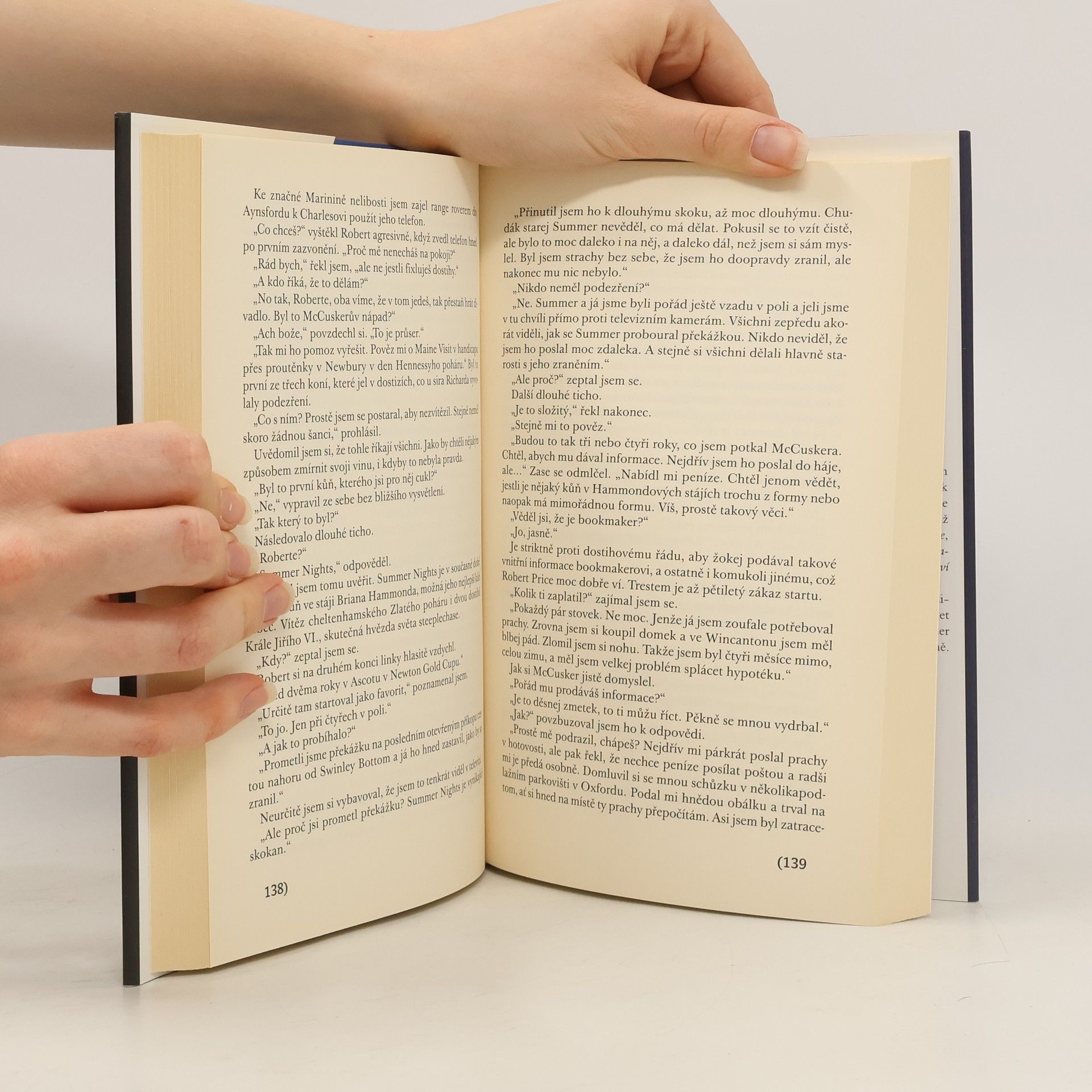 Sid Halley, se vrací na scénu v novém strhujícím příběhu Felixe Francise. Před šesti lety opustil Sid Halley svou vyšetřovatelskou dráhu, během níž mnohokrát zažil pronásledování, ponižování, bití, byl postřelen, a dokonce přišel o ruku. Kvůli manželce a malé dcerce se vzdal nebezpečného a nejistého života s představou, že ho do této hry již nic nenaláká. Jenomže to se mýlil. Sir Richard Stewart, předseda dostihového vedení, požádá Sida, aby prošetřilo sérii podivných výsledků v řadě dostihů. Sid nejprve rozhodně odmítne, ale následující den je za podezřelých okolností sir Richard nalezen mrtvý. Poté se však vyšetřovateli ozve neznámý muž s irským přízvukem a nutí ho, aby o podezřelých dostizích vypracoval očišťující zprávu. Sid si uvědomuje, že se nepříteli musí postavit v otevřeném boji – jinak by mohl za své odmítnutí poslušnosti zaplatit cenu nejvyšší.