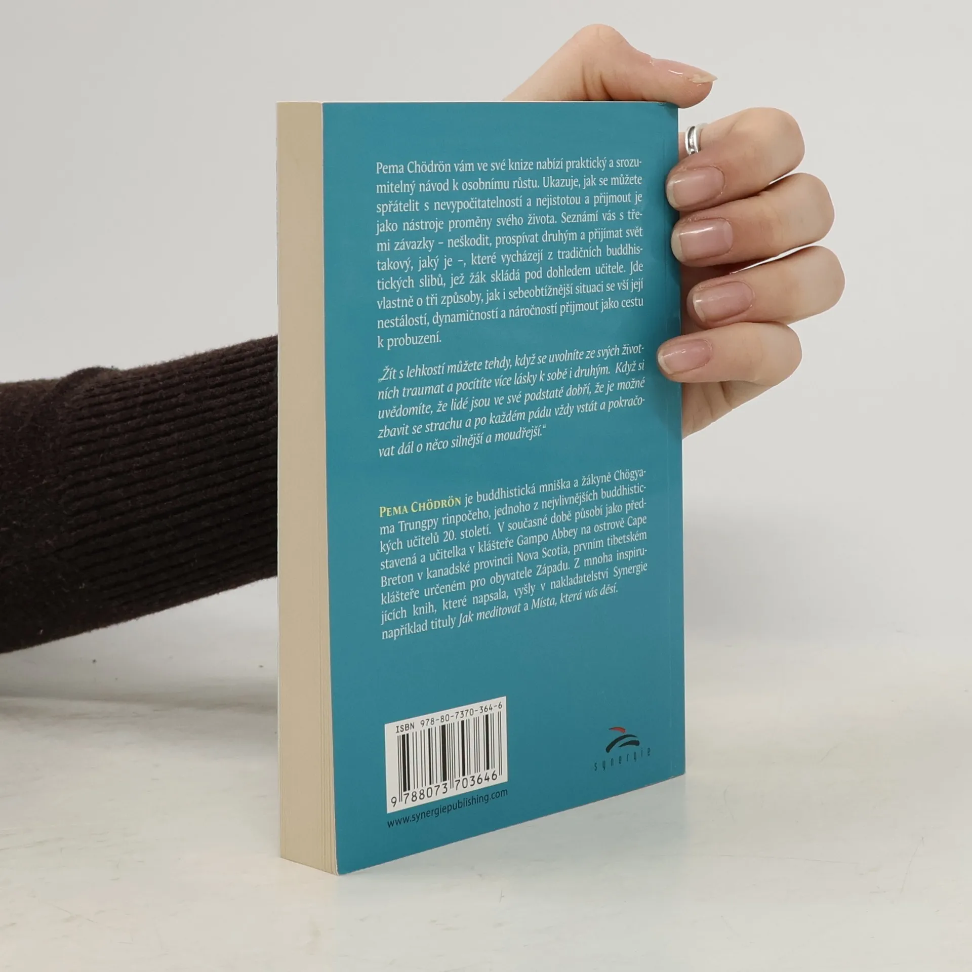 Pema Chödrön vám ve své knize nabízí prakticky´ a srozumitelný návod k osobnímu růstu. Ukazuje, jak se můžete spřátelit s nevypočitatelností a nejistotou a přijmout je jako nástroje proměny svého života. Seznámí vás se třemi závazky – neškodit, prospívat druhým a přijímat svět takový, jaký je –, které vycházejí z tradičních buddhistických slibů, jež žák skládá pod dohledem učitele. Jde vlastně o tři způsoby, jak i sebeobtížnější situaci se vší její nestálostí, dynamičností a náročností přijmout jako cestu k probuzení. „Žít s lehkostí můžete tehdy, když se uvolníte ze svých životních traumat a pocítíte více lásky k sobě i druhým. Když si uvědomíte, že lidé jsou ve své podstatě dobří, že je možné zbavit se strachu a po každém pádu vždy vstát a pokračovat dál o něco silnější a moudřejší.“
