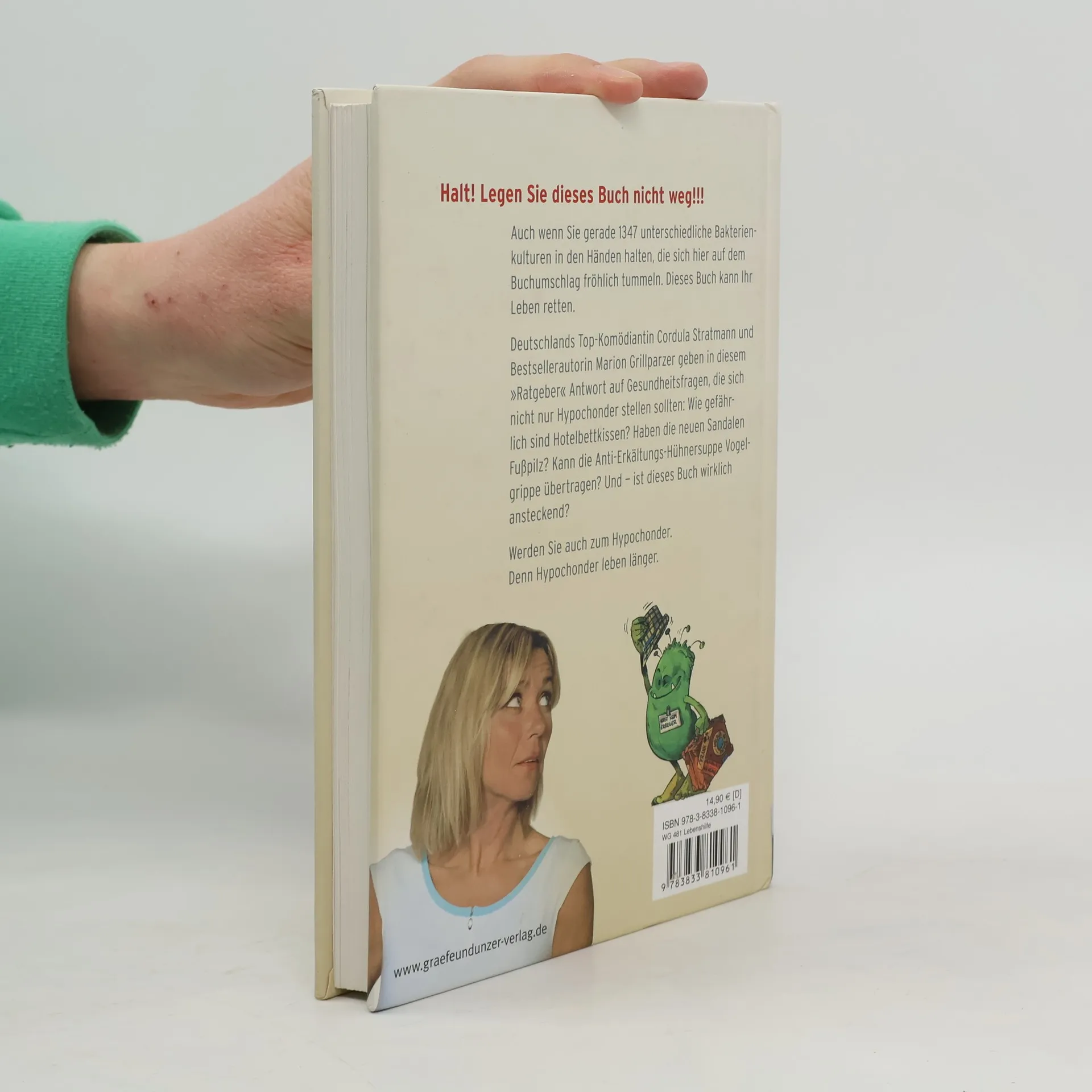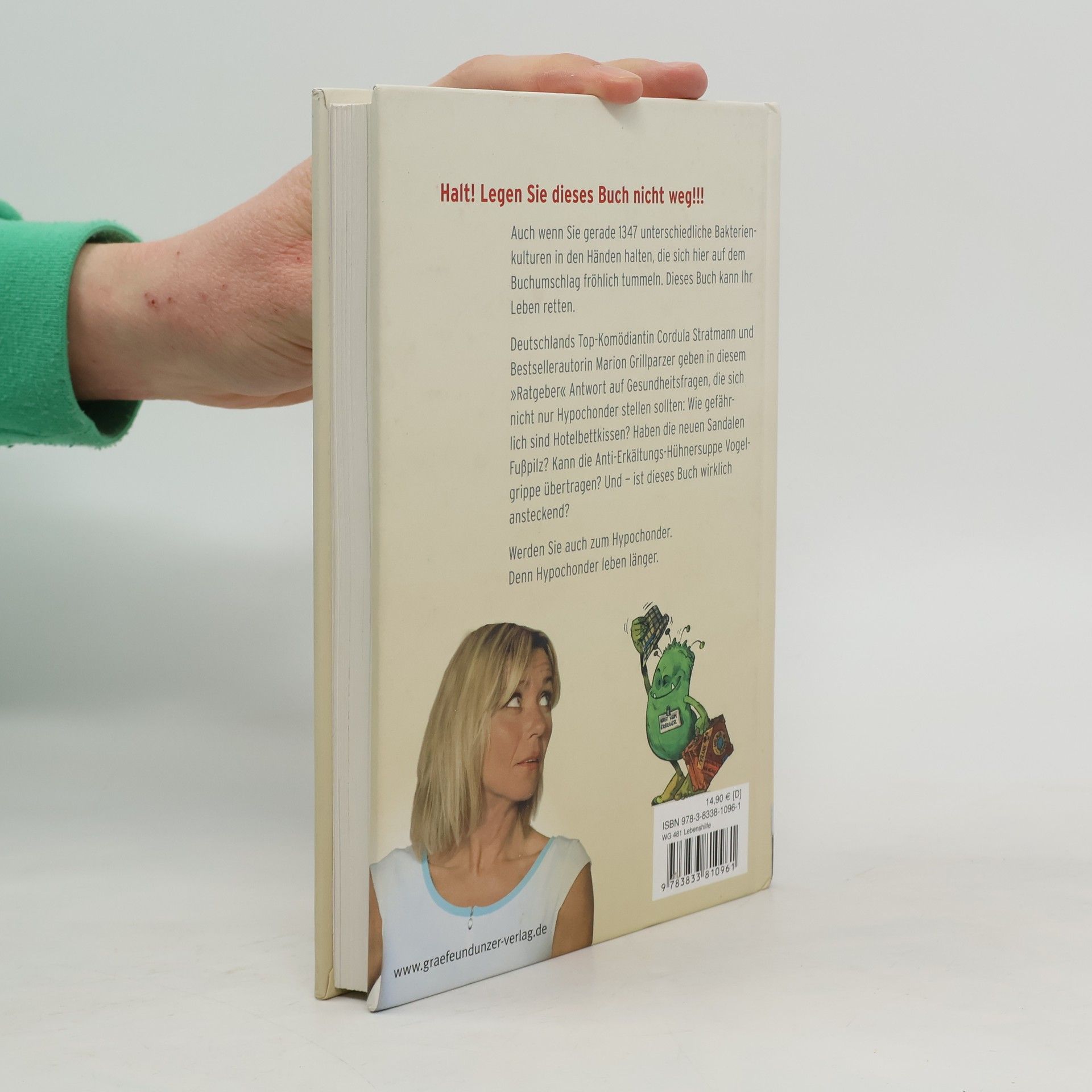 Das Leben ist lebensgefährlich. Wer wüsste das nicht besser als die körperbewusste Menschengattung der Hypochonder. In verzweifelten E-Mails holt sich Deutschlands beliebteste Komödiantin Cordula Stratmann, bekannt aus der Schillerstraße und Das weiß doch jedes Kind, deshalb Rat von der Gesundheitsexpertin Marion Grillparzer zu Themen, bei denen wir alle noch lernen können: Wie gefährlich sind Hotelbettkissen? Kann ein Pickel zu einer Hirnhautentzündungen führen? Was tun, wenn man aus Versehen ein Ei von einem unglücklichen Huhn verspeist hat? Und apropos Hühner: Kann die Anti-Erkältungs-Hühnersuppe Vogelgrippe übertragen? Lachen ist bekanntlich die beste Medizin. Hier werden Sie lachen, bis der Arzt kommt.