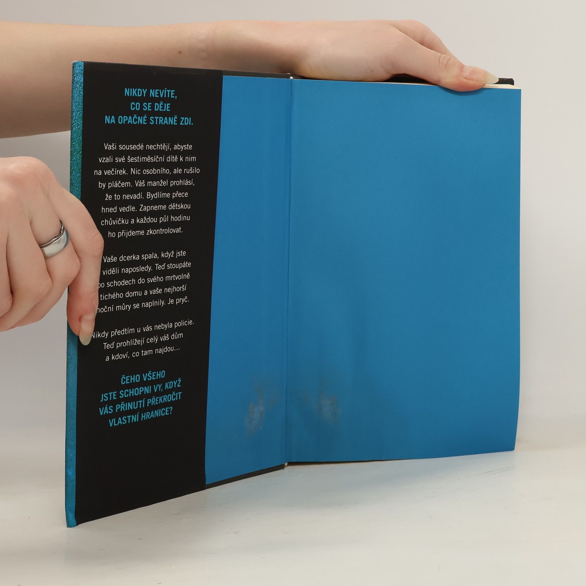 Vaše sousedka nechce, abyste vzali své šestiměsíční dítě na slavnostní večeři. Nic osobního, ale rušilo by pláčem. Váš manžel prohlásí, že to nevadí. Bydlíme přece hned vedle. Zapneme dětskou chůvičku a každou půl hodinu ho přijdeme zkontrolovat. Vaše dcerka spala, když jste ji viděli naposledy. Teď stoupáte po schodech do svého mrtvolně tichého domu a vaše nejhorší noční můry se naplnily. Je pryč. Nikdy předtím u vás nebyla policie. Teď prohlížejí celý váš dům a kdoví, co tam všechno najdou…