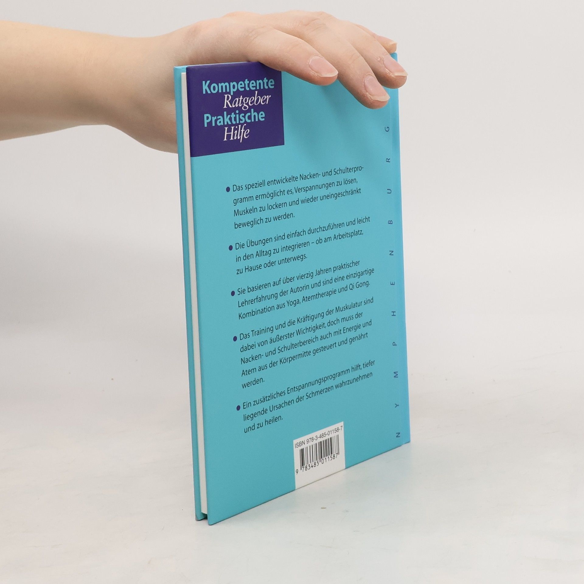 Das speziell entwickelte Nacken- und Schulterprogramm ermöglicht es, Verspannungen zu lösen, Muskeln zu lockern und wieder uneingeschränkt beweglich zu werden. Die Übungen sind leicht in den Alltag zu integrieren, basieren auf über vierzig Jahren praktischer Lehrerfahrung der Autorin und sind eine einzigartige Verbindung aus Yoga, Atemtherapie und Qi Gong. Das Training und die Kräftigung der Muskulatur sind dabei von äußerster Wichtigkeit, doch muss der Nacken- und Schulterbereich auch mit Energie und Atem aus der Körpermitte gesteuert und genährt werden. Ein zusätzliches Entspannungsprogramm hilft, tiefer liegende Ursachen der Schmerzen wahrzunehmen und zu heilen.