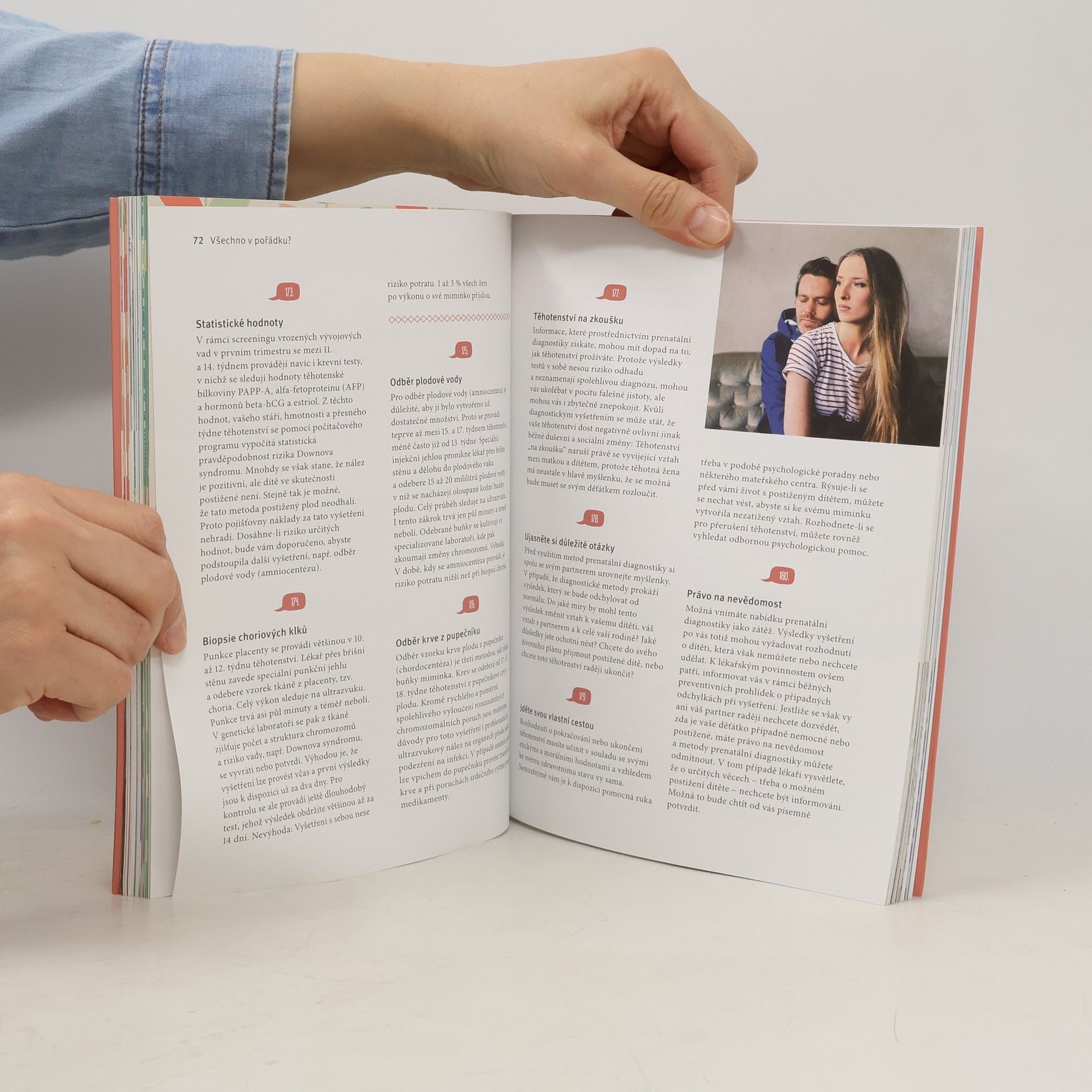 Očekávání příchodu děťátka je mimořádné životní období, které je spojeno s velkou radostí, nadějemi, těšením, ale možná i obavami a nejistotou. Tato kniha představuje praktického rádce, který provede nastávající maminky a tatínky devíti měsíci těhotenství a připraví je na vše, co je s novým životem spojeno. Obsahuje více než 300 tipů a přehledně řazených odpovědí na spoustu otázek: Od preventivních vyšetření a typických obtíží v těhotenství přes výživu nastávající matky, sex a sport až po dobrodružství porodu i období šestinedělí. Pomůže budoucím rodičům zvládnout citové výkyvy, tělesné změny a poradí i v záležitostech administrativních (jak je to se zápisem do porodnice, s mateřskou a rodičovskou dovolenou apod.).
