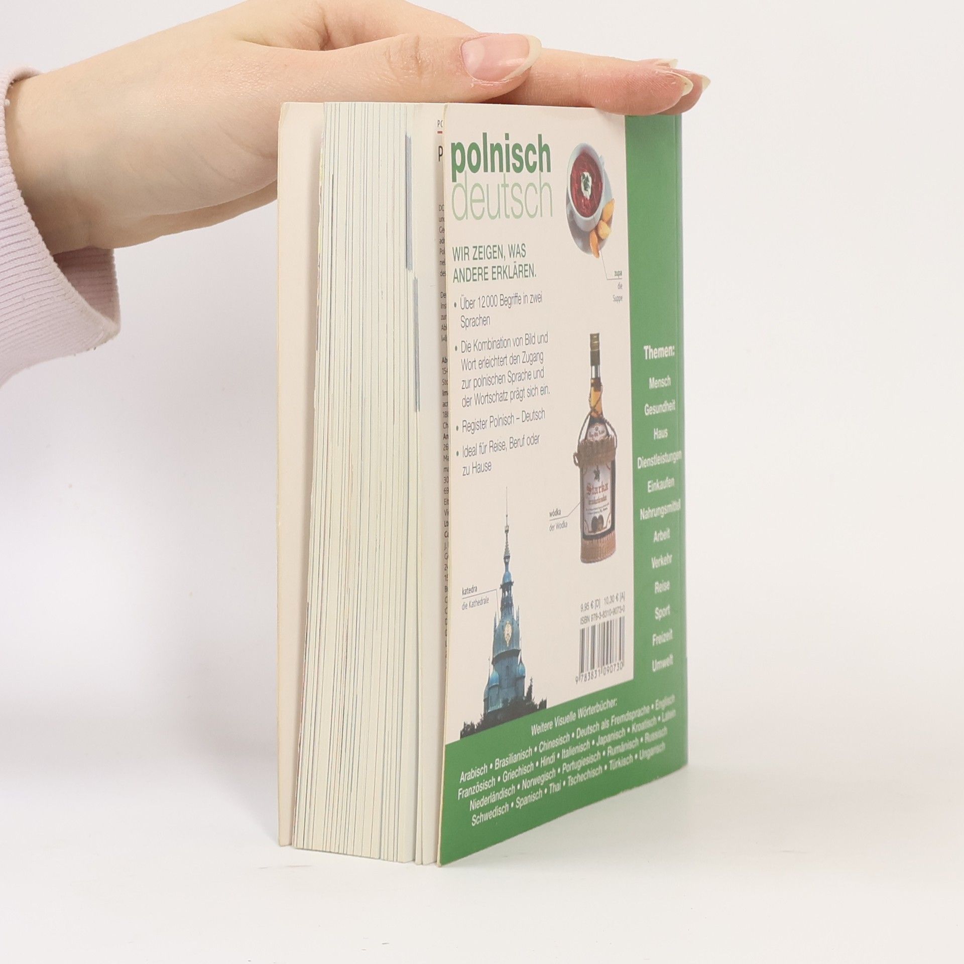 Dieses kompakte Bildwörterbuch stellt über 12.000 polnische Begriffe und deren deutsche Übersetzung vor. Über 1600 farbige Fotografien und Grafiken sowie eine systematische Gliederung in verschiedene Bereiche des alltäglichen Lebens ermöglichen einen schnellen und lebendigen Zugang zur polnischen Sprache. Informationskästen mit grammatischen Erläuterungen runden das Buch ab.
