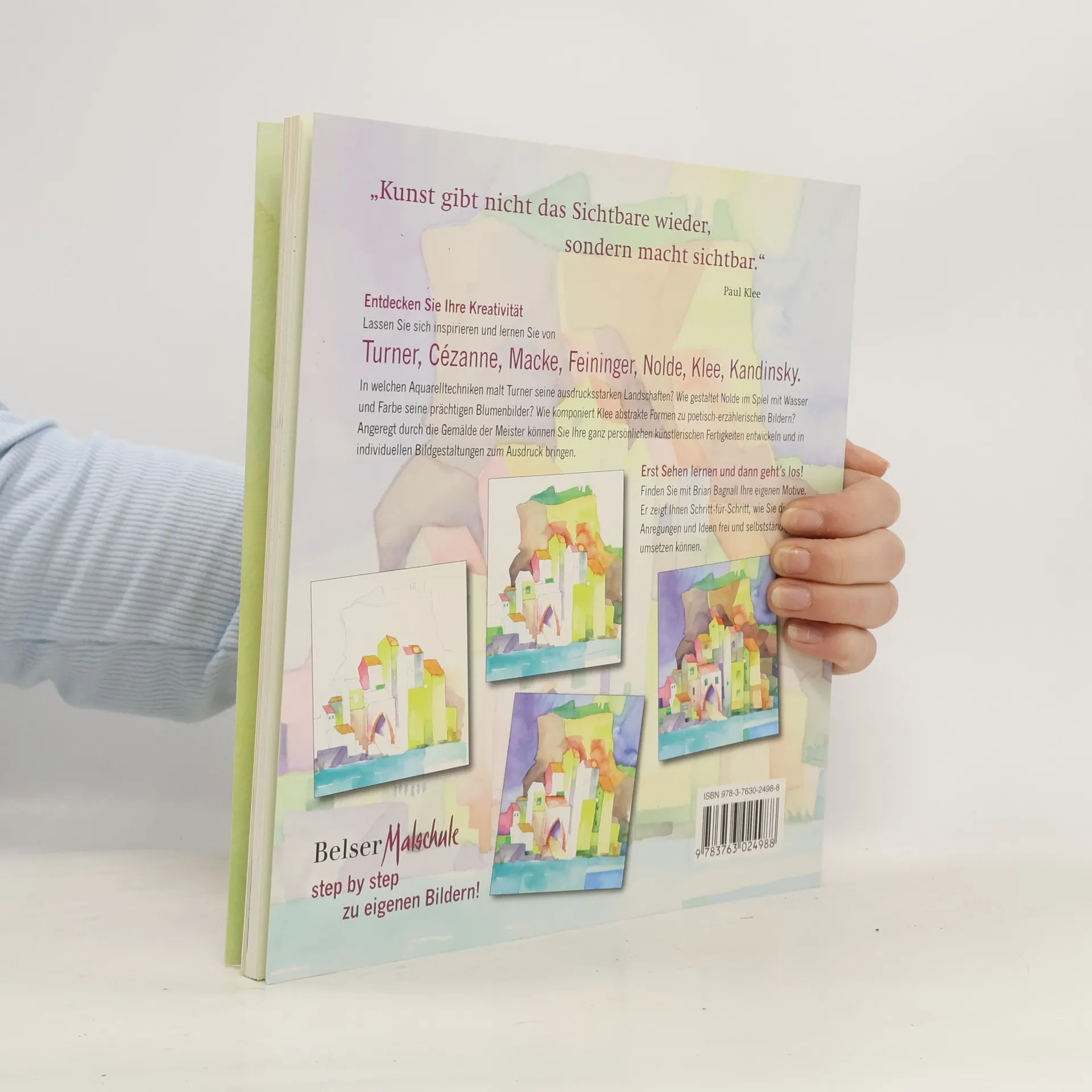 · Stimmungsvolle Aquarelle selber malen · Kreatives Spiel mit Wasser und Farbe · Wie lässt Turner stimmungsvolle Landschaften entstehen? · Wie fängt Macke das Licht des Südens ein? · Wie bringt Nolde die Farbe zum Leuchten? · Berühmte Künstler inspirieren zu eigenen Motiven! Von Künstlern inspiriert: William Turner, Paul Cézanne, August Macke, Lyonel Feininger, Emil Nolde, Paul Klee, David Hockney Die Belser Malschule: Von Künstlern inspiriert die eigene Kreativität entdecken. Malschulen gibt es viele, doch diese Reihe bietet den Schlüssel zum Erfolg: „Lassen Sie sich inspirieren von der Kunst und lernen Sie von den Meistern“. Es geht nicht darum, die Bilder der großen Künstler einfach zu kopieren, sondern beim Betrachten der Meister die eigene Kreativität zu entdecken. Wie können die Farben harmonisch und stimmungsvoll ins Bild gesetzt werden? Welche Ausdrucksmöglichkeiten liegen im Farbauftrag? Wie ergeben sich spannungsreiche Bildarrangements? Mit dem so geschulten Blick können Ihre persönlichen künstlerischen Fertigkeiten in ganz individuellen Bildgestaltungen zum Ausdruck gebracht werden. · Detaillierte Bildbetrachtungen zeigen künstlerische Techniken und Tricks anschaulich auf und machen Lust aufs eigene Gestalten · Schritt-für-Schritt-Einheiten helfen, die Beobachtungen und Erkenntnisse selbständig und frei umzusetzen · Der erfolgreiche Weg zur eigenen kreativen Bildgestaltung – für Einsteiger und „Alte Hasen“!