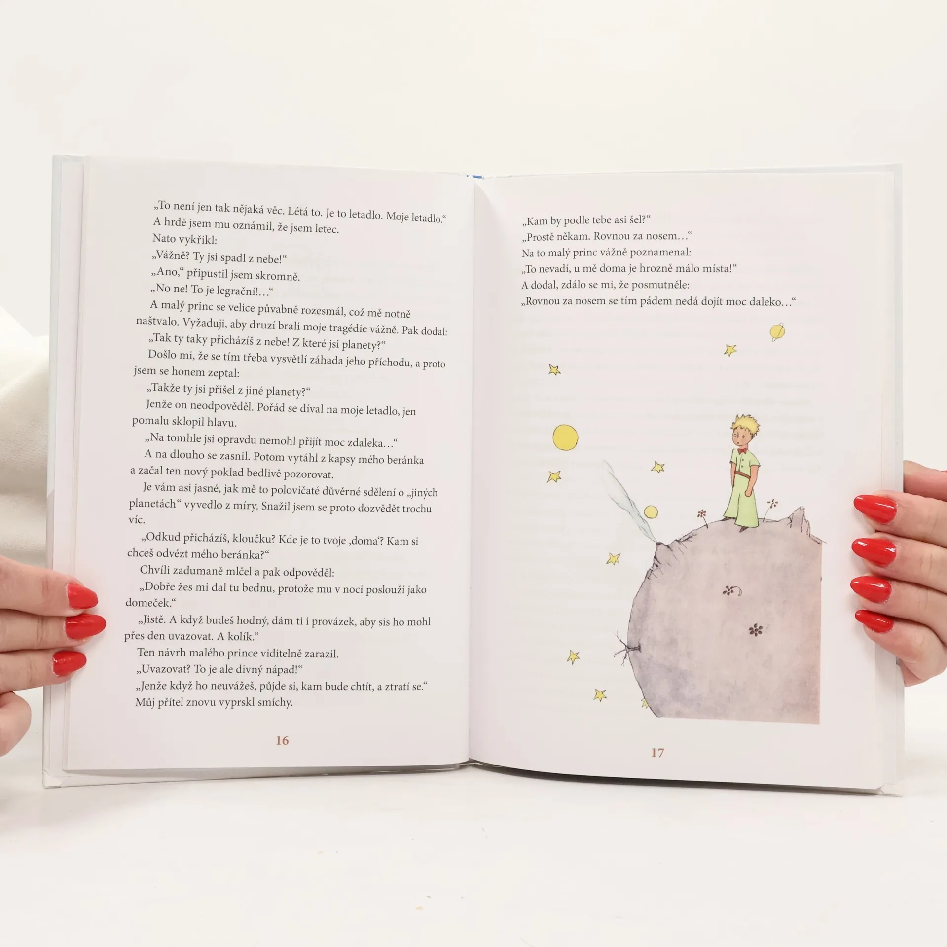 S Malým princem se v africké poušti setkává opuštěný letec, autor této knížky. Zatímco se pokouší opravit havarovaný stroj, povídají si o všeličem. O tajemství podivuhodné pouti Malého prince, o dobru a zlu, o přátelství a kráse, o pravém štěstí, o odpovědnosti za ty, které máme rádi. A vůbec nezáleží na tom, odkud pocházíme: Malý princ pocházel z tak malinké planetky, že si to možná ani neumíme představit...