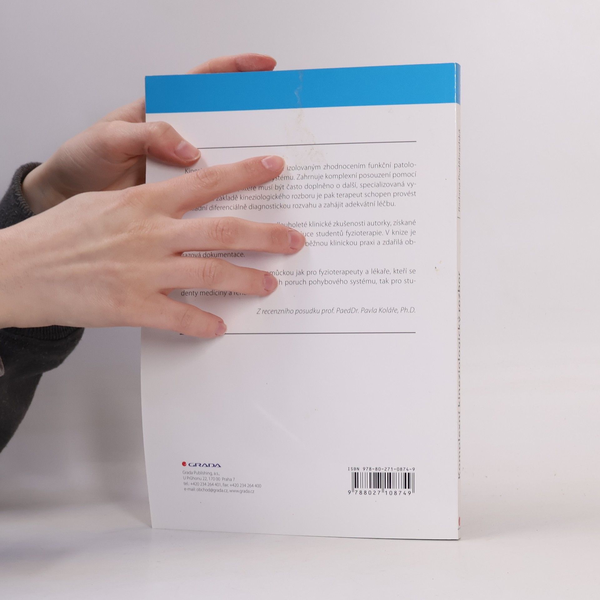 Komplexní kineziologický rozbor je základní diagnostický prostředek fyzioterapie a myoskeletální medicíny. Publikace vychází z učení zakladatelů domácí školy myoskeletální medicíny prof. Jandy a prof. Lewita a poskytuje ucelený pohled na problematiku funkčních poruch pohybového systému, zejména s ohledem na nové poznatky v oboru fyzioterapie. Srozumitelnou formou seznamuje s problematikou funkčních poruch pohybového systému a prezentuje základní rozdělení těchto poruch se zaměřením na vysvětlení etiologie, diagnostiky a terapie. Dále vysvětluje základní pojmy užívané ve vztahu k funkčním poruchám pohybového systému. Nabízí sjednocení obsahu a výkladu základního vyšetření ve fyzioterapii, komplexního kineziologického rozboru, nejen pro fyzioterapeuty, ale i pro pracovníky ostatních medicínských oborů. Podrobně popisuje např. anamnézu ve vztahu k pohybovému systému, aspekci zejména s vyjádřením ke kineziologickým normám i zásady správné palpace. Uvádí také doplňující vyšetření k vyloučení nebo potvrzení jednotlivých poruch pohybového systému. Publikace je doplněna mnoha originálními schematickými obrázky, které přispívají k mimořádné srozumitelnosti pro čtenáře a tím i k vysoké didaktické hodnotě. Kniha je určena pro každodenní praxi lékařům i pracovníkům v oborech fyziatrie, balneologie, léčebná rehabilitace, ale i studentům.
