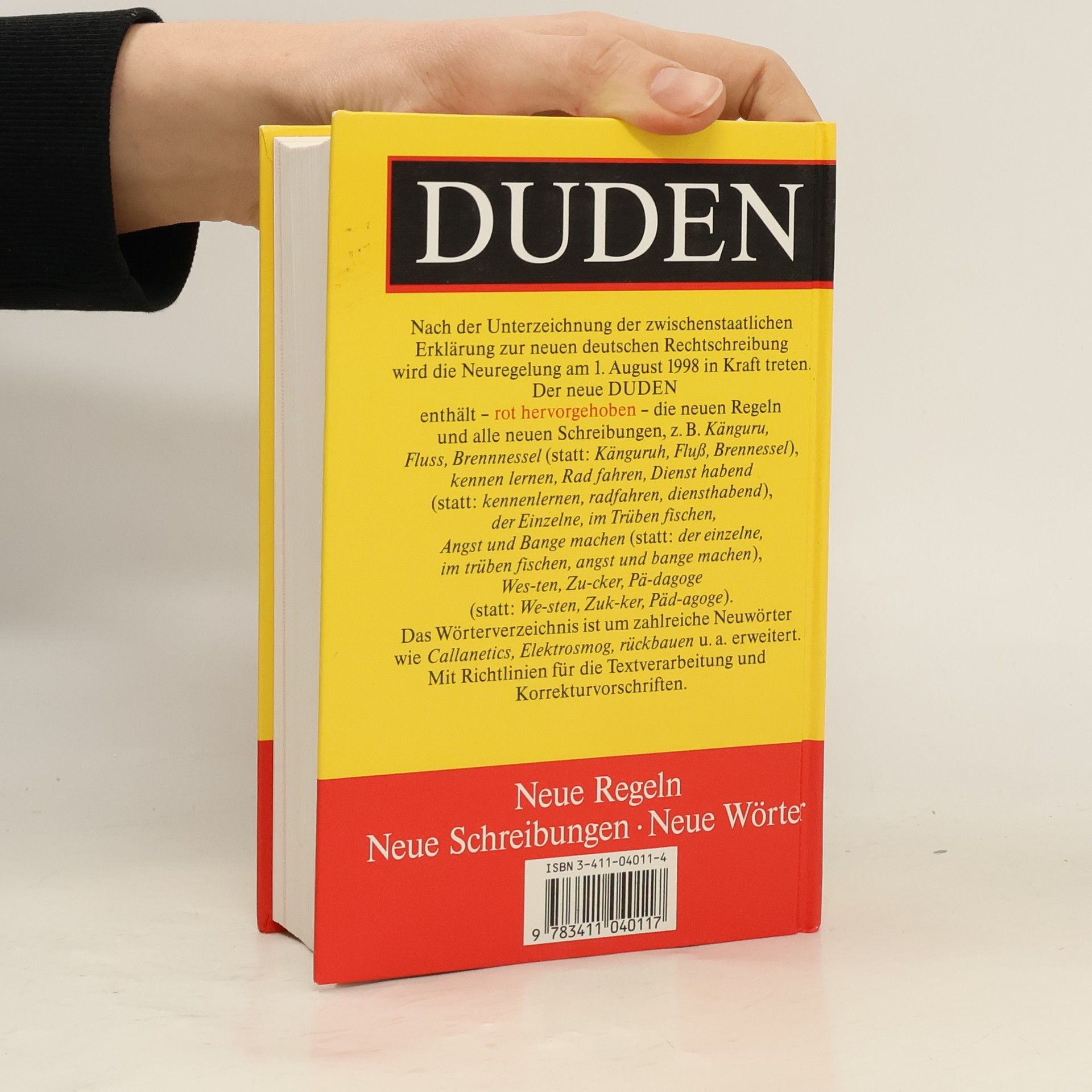 Das Standardwerk der Rechtschreibung. 125.000 Stichwörter mit über 500.000 Beispielen, Bedeutungserklärungen und Angaben zur Worttrennung, Aussprache, Grammatik und Etymologie. 5.000 neu aufgenommene Wörter der letzten Jahre. Aktueller Stand der deutschen Rechtschreibung mit allen ab August 2005 für Schulen und Behörden allein verbindlichen Schreibungen, Worttrennungen und Regeln. Alle neuen Schreibungen, Worttrennungen und Regeln in roter Hervorhebung. Die wichtigsten Regelergänzungen im Überblick. Eine separate vergleichende Gegenüberstellung alter und neuer Schreibungen. Rund 300 farbig her, Hersteller: Diverse, Marke: DUDEN