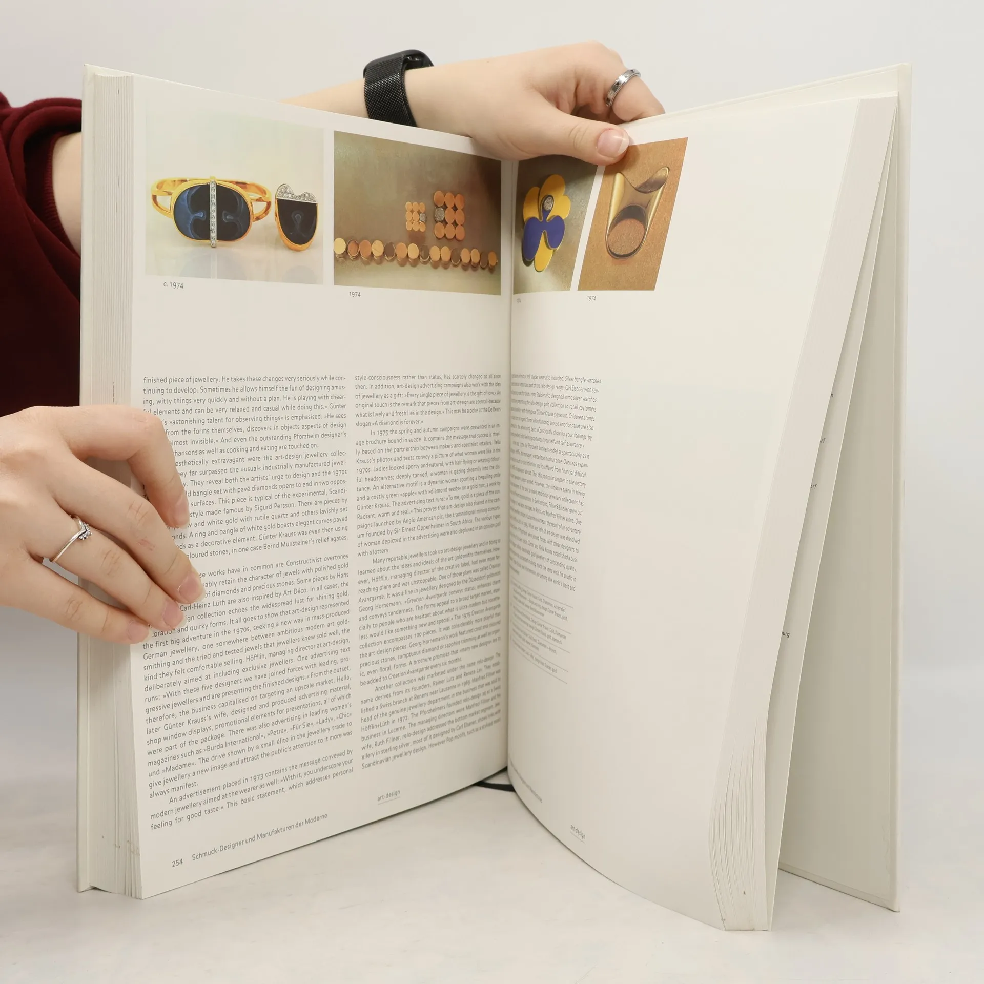 In dieser Publikation wird erstmals die Entwicklung des modernen seriellen Schmuck-Designs der Nachkriegszeit bis heute dokumentiert. Diese eigenständige Richtung im Schmuck – mit -Bezügen zur modernen Kunst, Architektur und Design – hat sich vor allem im deutschsprachigen Raum etabliert. Heutiges Schmuck-Design entsteht in mittelständischen Manufakturen und Ateliers und ist eine Gegenströmung zum konventionellen Luxusschmuck. Seit den 1990er Jahren ist ein zunehmendes Interesse an diesem Schmuck, besonders in den USA, in Europa und in Asien, zu beobachten. Der Autor beginnt mit einem kurzen Rückblick auf die Ursprünge des modernen Schmucks: Jugendstil, Art Déco, Bauhaus und Neue Sachlichkeit. Die Renaissance der Goldschmiedekunst ab Mitte der 1960er Jahre lieferte die formalen und geistigen Grundlagen für die Entwicklung im modernen seriellen Schmuck-Design. Der große Bildteil zeigt die Entwicklungsgeschichte mit den -bedeutendsten Klassikern des modernen Schmuck-Designs und die -heutigen Protagonisten mit ihren außergewöhnlichen Schmuck-Entwürfen. Design-Manufakturen und Ateliers (Auswahl): Adam & Stoffel Carl Dau Gellner Heinrich& Denzel Jörg Heinz Angela –Hübel IsabellaFa Niessing parsprototo Pur Monika -Seitter Georg Spreng