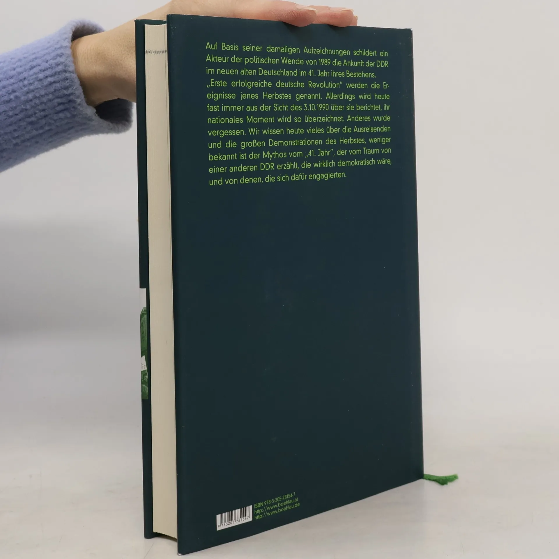 Ein Akteur der politischen Wende von 1989 schildert die Ankunft der DDR im neuen Deutschland im 41. Jahr ihres Bestehens. Die Ereignisse dieses Herbstes werden oft als „erste erfolgreiche deutsche Revolution“ bezeichnet, jedoch wird häufig nur aus der Perspektive des 3. Oktober 1990 berichtet, wodurch das nationale Moment überzeichnet wird. Weniger bekannt ist der Mythos vom „41. Jahr“, der von der Vision einer demokratischen DDR erzählt und von den Menschen, die sich dafür einsetzten. Dieter Segert, Politikwissenschaftler und Osteuropaexperte, war Teil einer SED-Basisgruppe an der Humboldt-Universität und beleuchtet, wie ohne diese Reformer aus der Staatspartei der Systemwandel anders verlaufen wäre. Die alte DDR war eine Diktatur, die vor allem durch die Zustimmung ihrer SED-Mitglieder funktionierte. Der friedliche Wandel wurde erst möglich, als sich die SED-Basis von den Parteiführungen zu lösen begann. Die Erzählung über die vergessenen Reformern des 41. Jahres lässt den demokratischen Pioniergeist jener Zeit neu entdecken. Die Geschichte des Wandels der Humboldt-Universität zwischen 1989 und 1991 kann als Lehrstück für demokratische Emanzipation in schwierigen Zeiten verstanden werden.