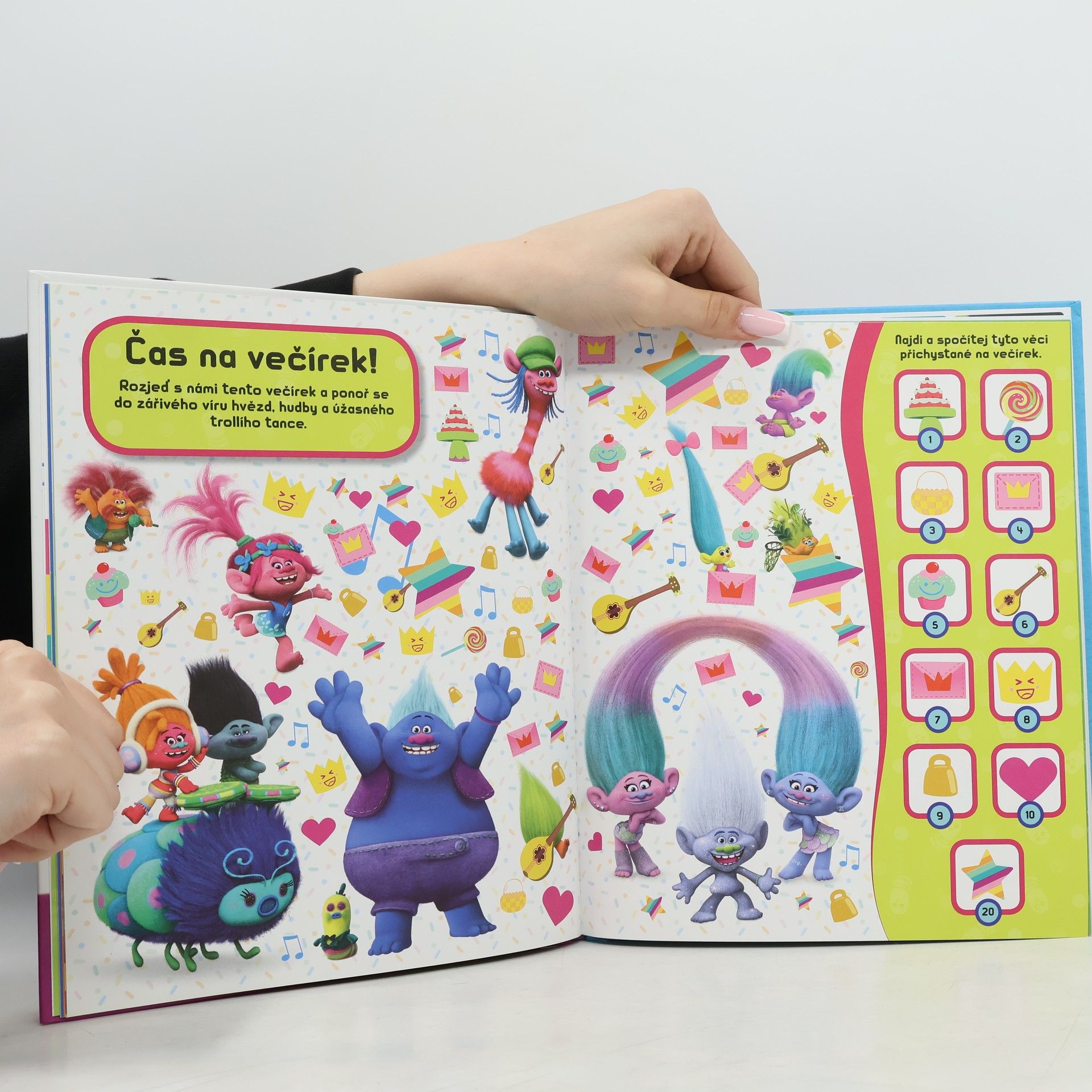 Najdeš je všechny? Nejlepší na světě jsou zpěv, tanec, objímání a... kamarádi! Trollové jsou šťastné bytosti nade vše milující tanec, zpěv a hlavně objímání! Vše kolem nich je zářivé a všude se rozléhá hudba. Přidej se k princezně Poppy a jejím přátelům a užij si spoustu zábavy při hře na schovku. V této bláznivé dobrodružné knize můžeš najít tisícovku úžasných trollích věcí! Vzhůru do Trollíkova, kde žijí nejoptimističtější bytosti na světě. Přidáš se k nim a najdeš všechny úžasné věci, které je obklopují?