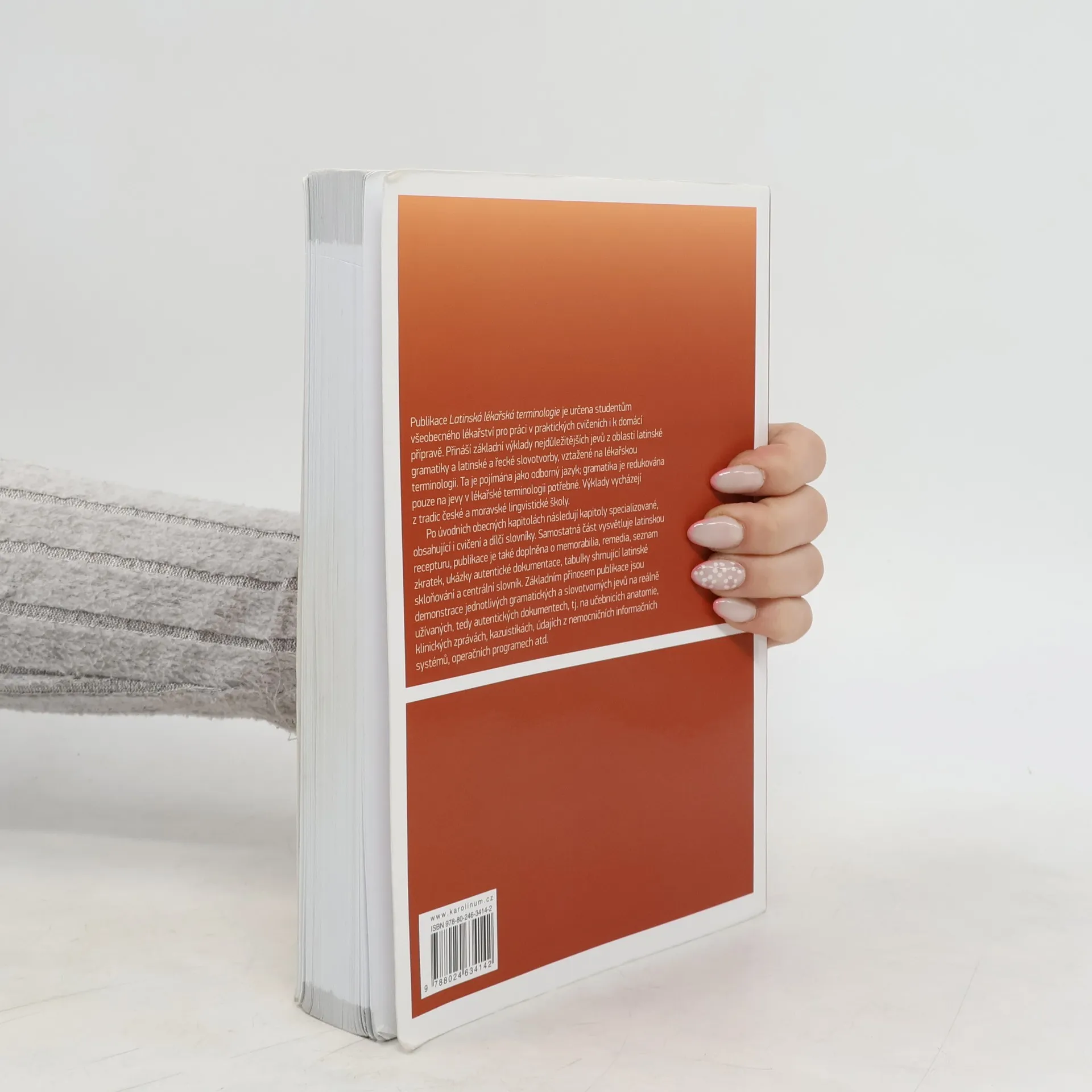 Publikace je určena studentům všeobecného lékařství pro práci v praktických cvičeních i pro domácí přípravu. Cílem je seznámit uživatele se základy gramatických a lexikálních jevů potřebných jak pro obory teoretické a preklinické, tak pro samotné obory klinické – jde zvláště o gramatiku latinských substantiv a adjektiv, výklad základních jevů latinské a řecké slovotvorby či uvedení do latinské receptury. Zvláště v tomto posledně jmenovaném oboru může najít užitečné informace i poučená veřejnost. Nedílnou součástí jsou úvodní výklady popisující výslovnost, gramatické kategorie a základní strukturu latinských lékařských termínů. Všechny gramatické a lexikální jevy jsou doloženy vhodnými příklady z reálně užívaných, tedy autentických dokumentů, tj. z učebnic anatomie, nemocničního informačního systému, z klinických zpráv a zápisů kazuistik. Knihu doplňuje nezbytný centrální slovník latinských medicínských pojmů.