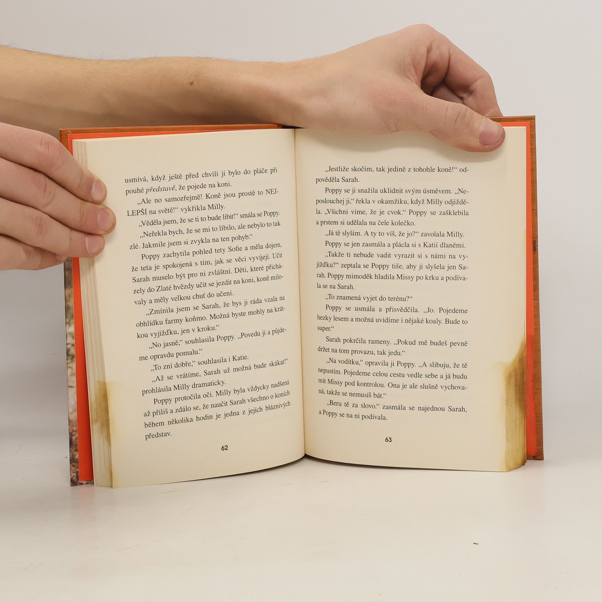 Poppy přiveze na Zlatou hvězdu svoji nejlepší kamarádku Sarah. Těší se, že si společně s Katií a Milly užijí jízdu na koních, ale Sarah s nimi jejich nadšení nesdílí. Vlastně se koní spíš bojí. Pak ale holky Sarah přesvědčí, ať s nimi vyrazí na projížďku. Pojedou přece krokem a nic se nemůže stát! Jenže je zastihne prudká bouřka a od úderu blesku začne hořet. Jak holky tuto dramatickou situaci zvládnou?