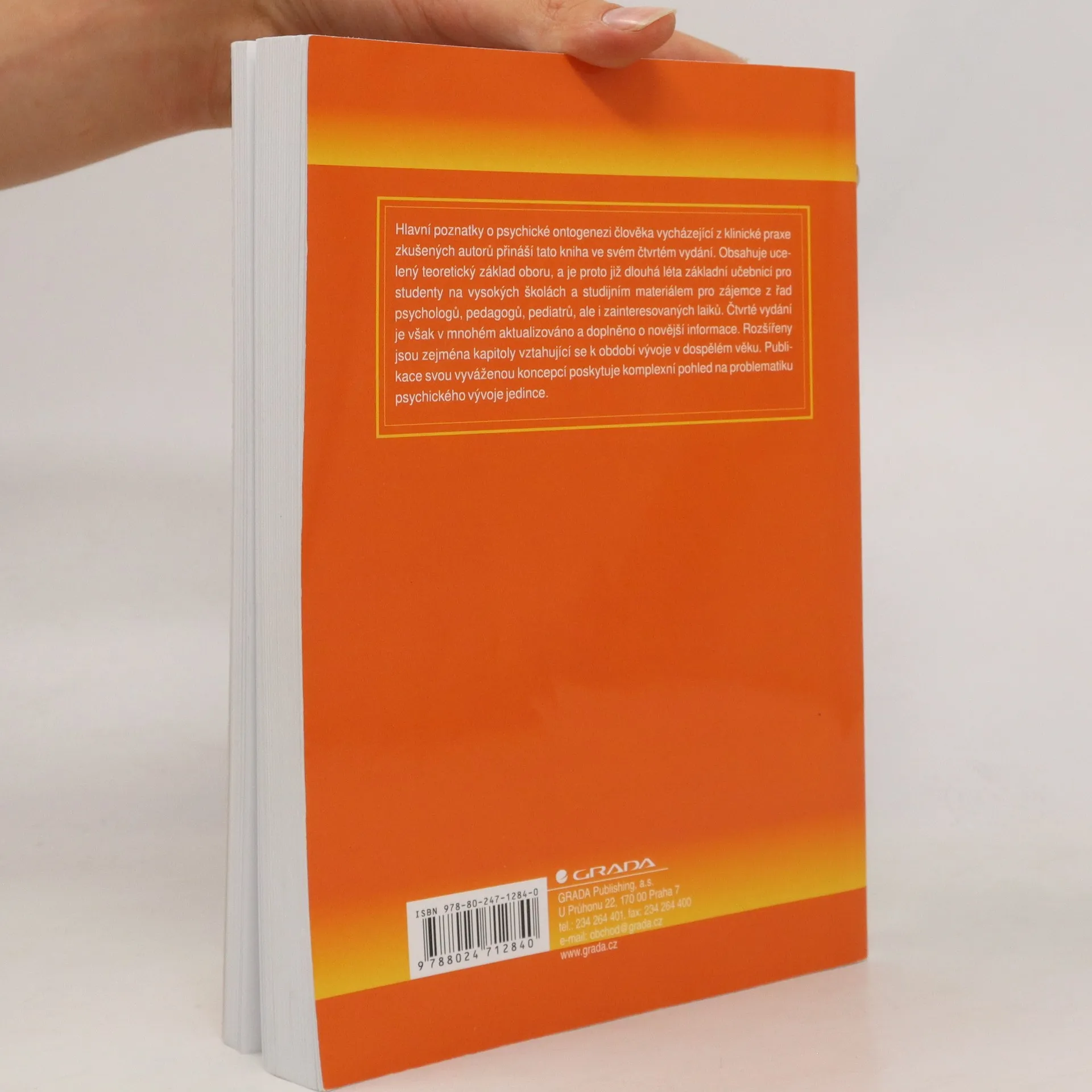 Hlavní poznatky o psychické ontogenezi člověka vycházející z klinické praxe zkušených autorů přináší tato kniha ve svém čtvrtém vydání. Obsahuje ucelený teoretický základ oboru, a je proto již dlouhá léta základní učebnicí pro studenty na vysokých školách a studijním materiálem pro zájemce z řad psychologů, pedagogů, pediatrů, ale i zainteresovaných laiků. Čtvrté vydání je však v mnohém aktualizováno a doplněno o novější informace. Rozšířeny jsou zejména kapitoly vztahující se k období vývoje v dospělém věku. Publikace svou vyváženou koncepcí poskytuje komplexní pohled na problematiku psychického vývoje jedince.