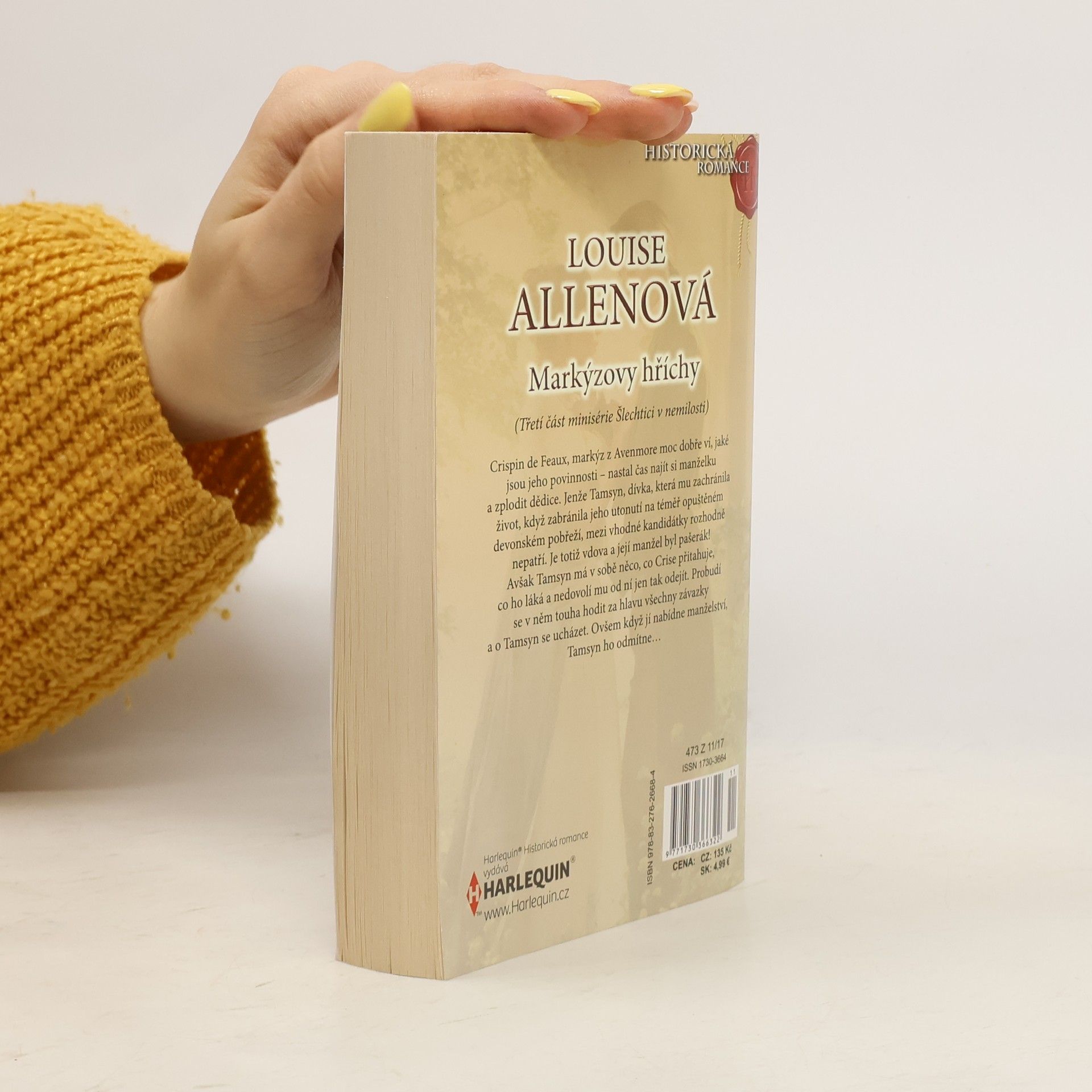 Crispin de Feaux, markýz z Avenmore moc dobře ví, jaké jsou jeho povinnosti - nastal čas najít si manželku a zplodit dědice. Jenže Tamsyn, dívka, která mu zachránila život, když zabránila jeho utonutí na téměř opuštěném devonském pobřeží, mezi vhodné kandidátky rozhodně nepatří. Je totiž vdova a její manžel byl pašerák! Avšak Tamsyn má v sobě něco, co Crise přitahuje, co ho láká a nedovolí mu od ní jen tak odejít. Probudí se v něm touha hodit za hlavu všechny závazky a o Tamsyn se ucházet. Ovšem když jí nabídne manželství, Tamsyn ho odmítne… (Třetí část minisérie Šlechtici v nemilosti)