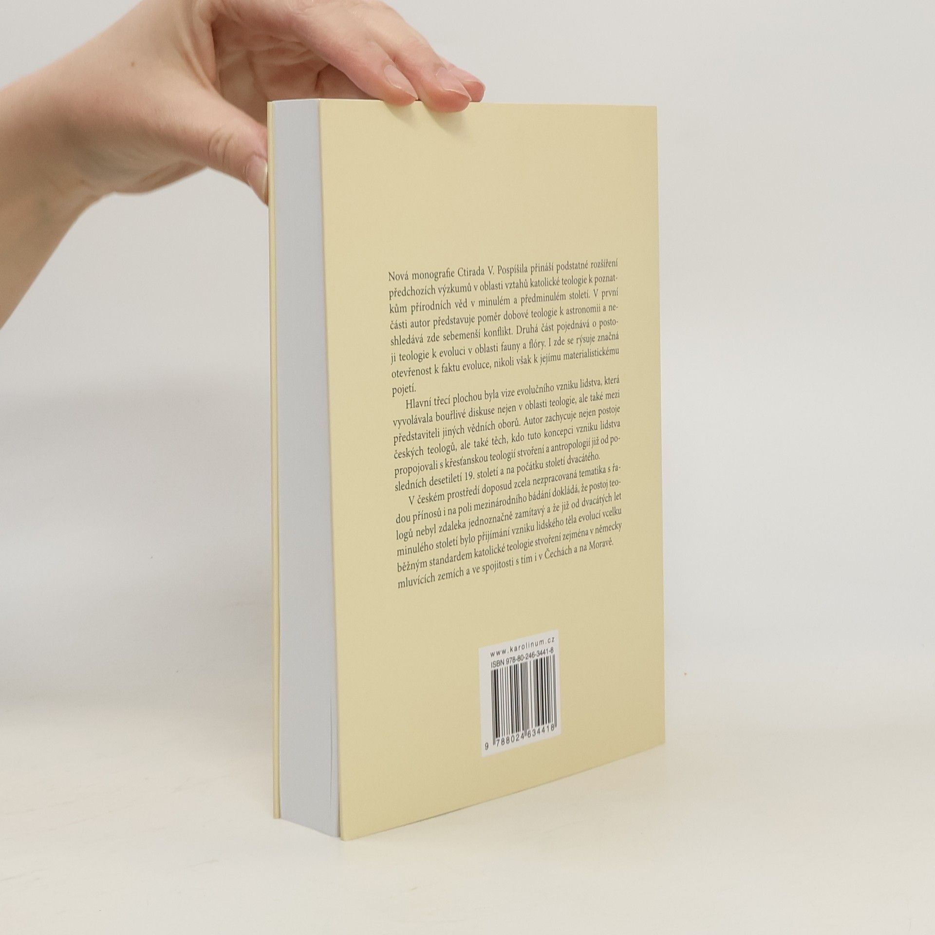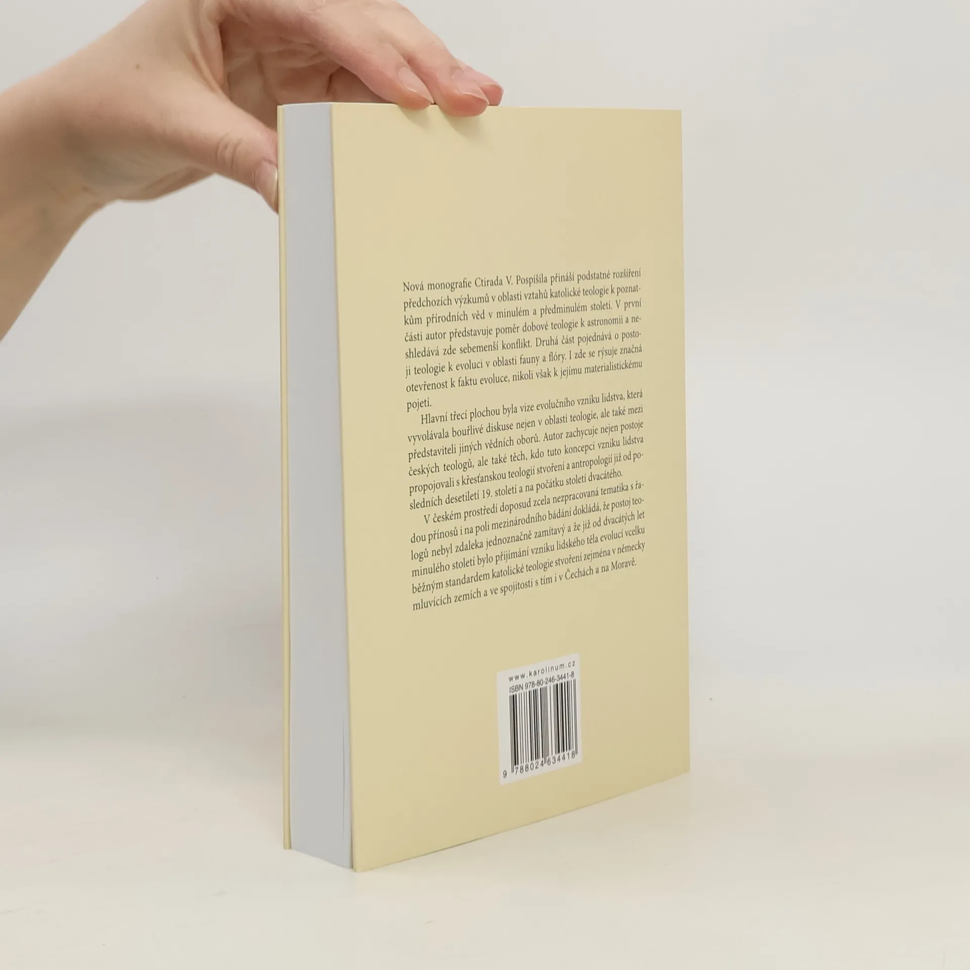 Monografie Ctirada V. Pospíšila přináší podstatné rozšíření předchozích výzkumů v oblasti vztahů katolické teologie k poznatkům přírodních věd v minulém a předminulém století. V první části autor představuje poměr dobové teologie k astronomii a neshledává zde sebemenší konflikt. Druhá část pojednává o postoji teologie k evoluci v oblasti fauny a flóry. I zde se rýsuje značná otevřenost k faktu evoluce, nikoli však k jejímu materialistickému pojetí. Hlavní třecí plochou byla vize evolučního vzniku lidstva, která vyvolávala bouřlivé diskuse nejen v oblasti teologie, ale také mezi představiteli jiných vědních oborů. Autor zachycuje nejen postoje českých teologů, ale také těch, kdo tuto koncepci vzniku lidstva propojovali s křesťanskou teologií stvoření a antropologií již od posledních desetiletí 19. století a na počátku století dvacátého. V českém prostředí doposud zcela nezpracovaná tematika s řadou přínosů i na poli mezinárodního bádání dokládá, že postoj teologů nebyl zdaleka jednoznačně zamítavý a že již od dvacátých let minulého století bylo přijímání vzniku lidského těla evolucí vcelku běžným standardem katolické teologie stvoření zejména v německy mluvících zemích a ve spojitosti s tím i v Čechách a na Moravě.